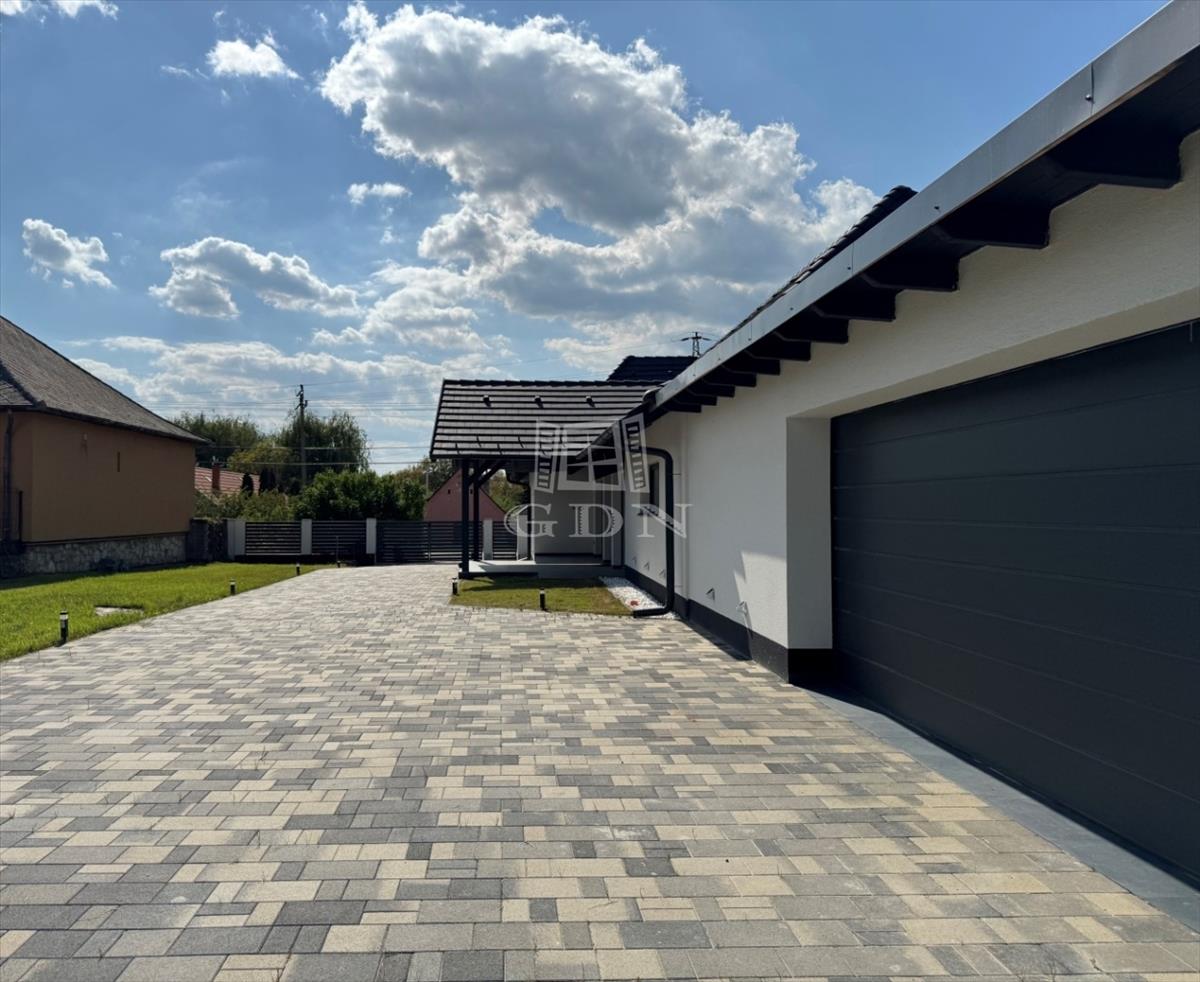 Egy gépesített, közel 50 m2-es amerikai konyhás nappali, egy szülői háló gardróbbal és fürdőszobával, kettő hálószoba, fürdőszoba, kazánház és egy nagyobb, mint kétállásos garázs lett kialakítva. a házhoz kapcsolódik egy 16m2-es fedett terasz is.