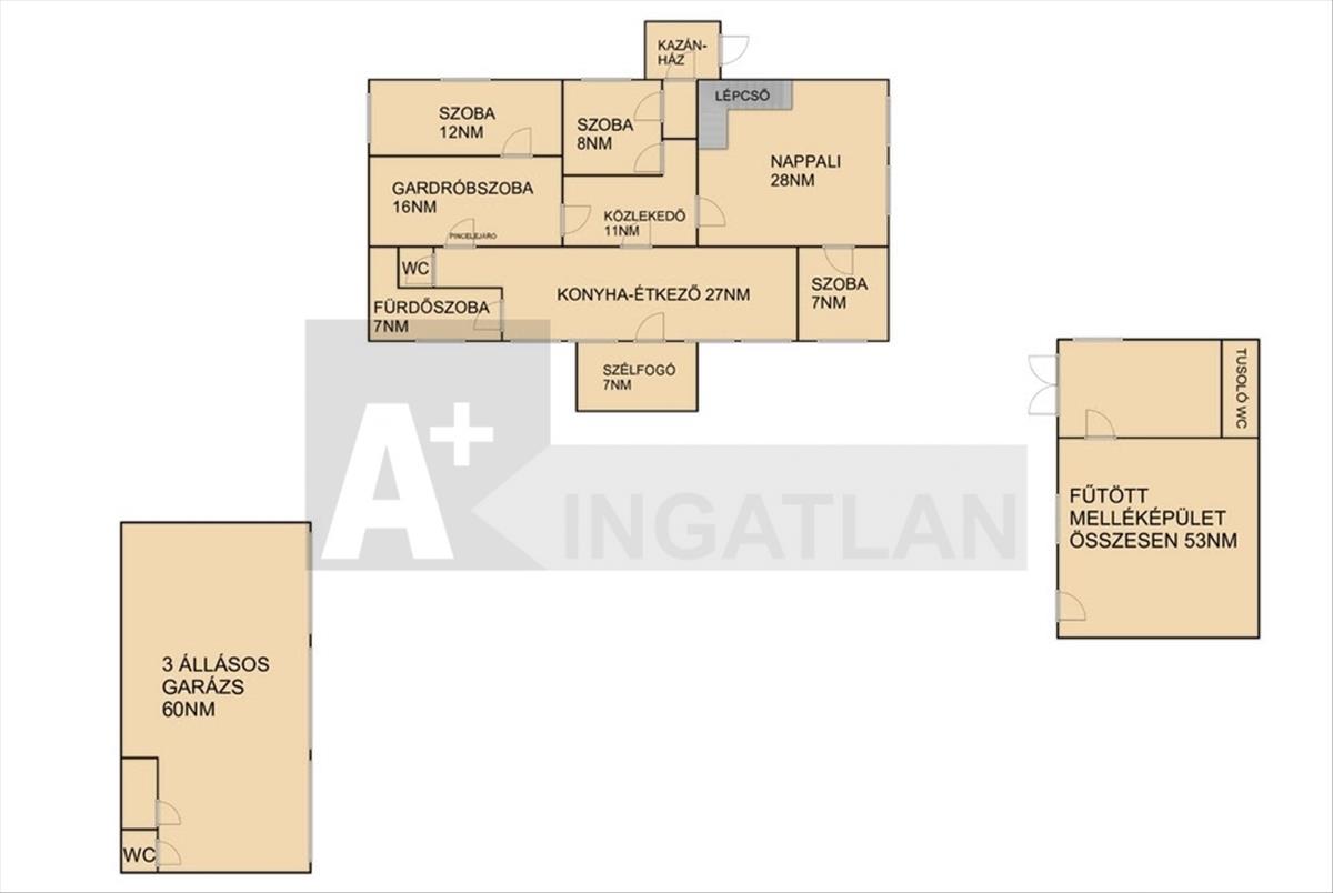 A képek között alaprajzot is talál, a főépület szobái még kiegészülnek egy emeleti közlekedővel és szobával, itt további 1 szoba kialakítható a tetőtér beépítésének folytatásával.