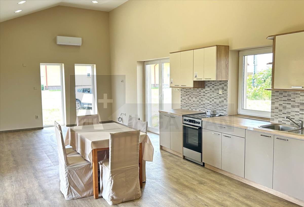 A ház központi tere a tágas nappali amerikai konyhával és étkezővel, melyből közvetlen kijárat nyílik a 15, 9 m²-es fedett teraszra.