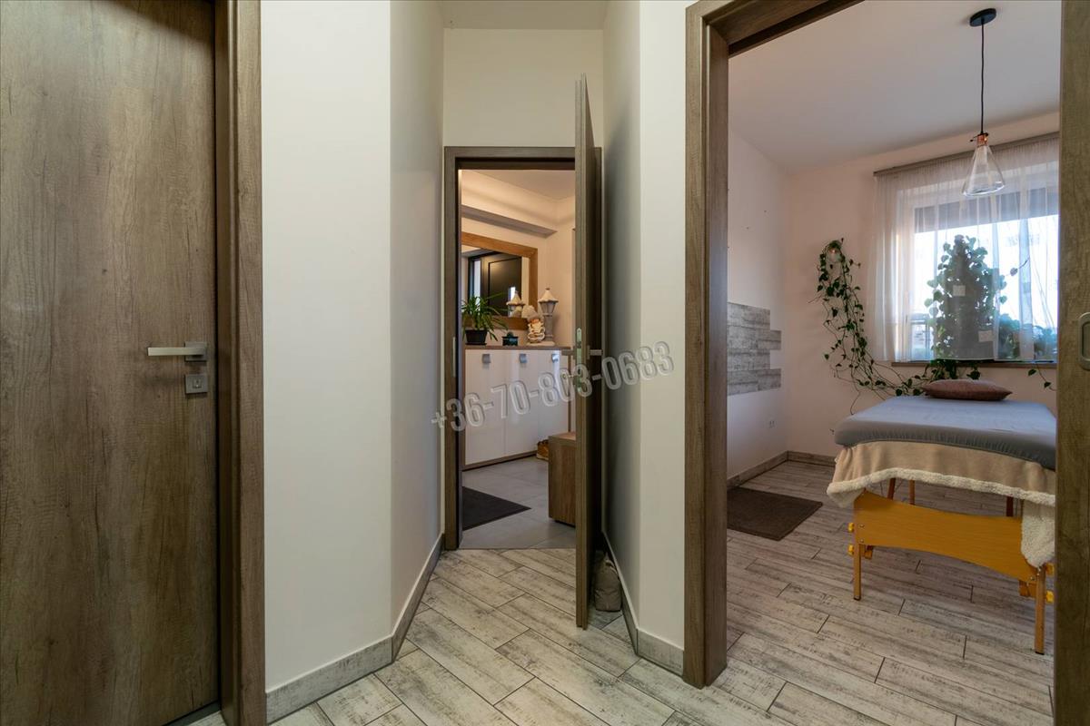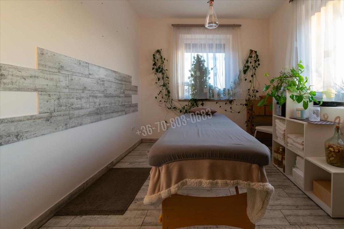 Az épület egyik nagy előnye a külön bejárattal rendelkező, önálló fürdőszobával és WC-vel ellátott helyiség, amely jelenleg masszázs szalonként működik, de funkcióját tekintve kiválóan alkalmas irodának, vendéglakásnak, vagy rendelőnek.