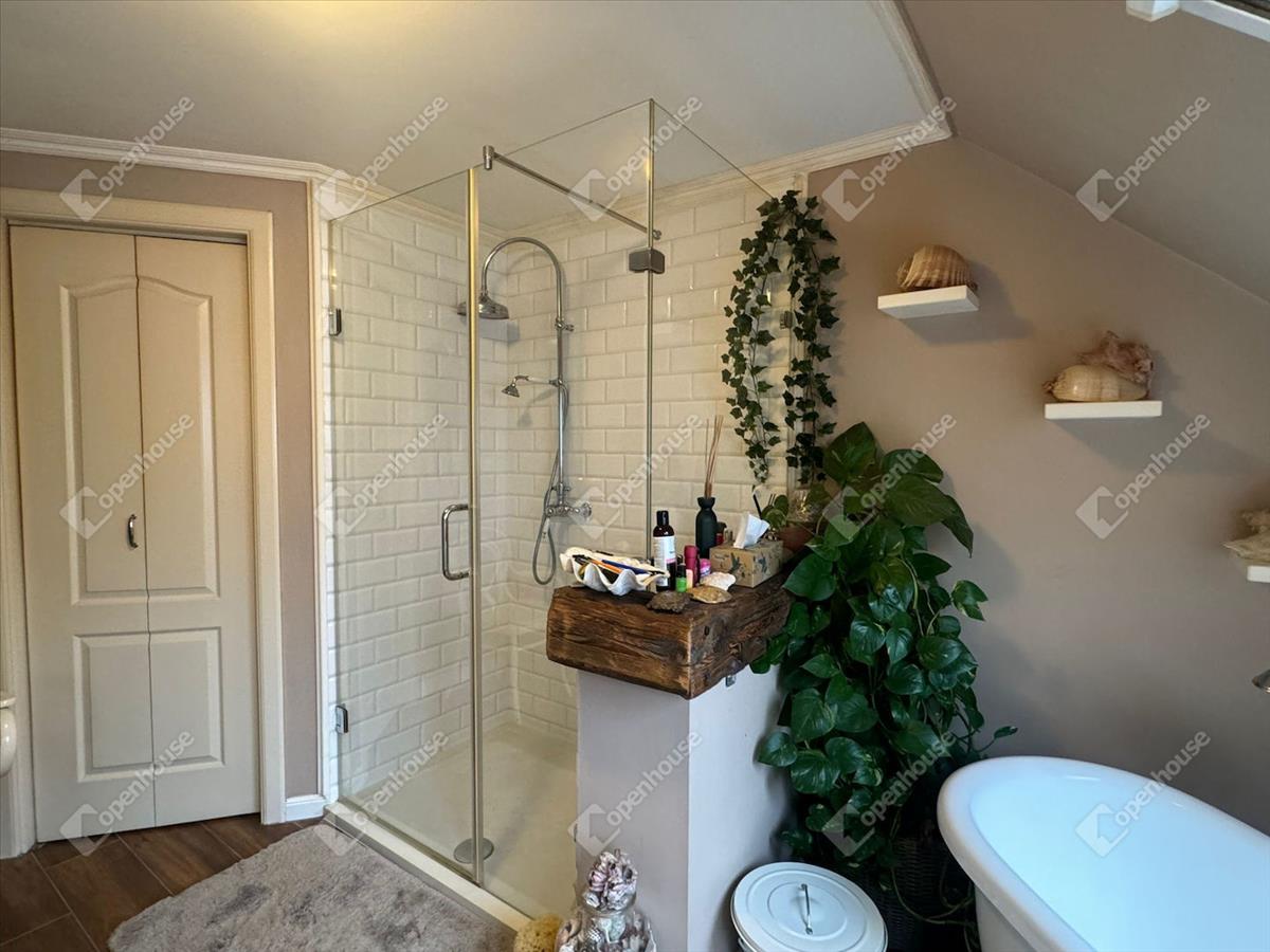 Az emeleten találhatók a hálóhelyiségek. Három szoba, egy előszoba, gardrób, mosókonyha és egy gyönyörű fürdőszoba, zuhanyzóval és lábakon álló, nagyon dizájnos fürdőkáddal! Az emeleten is külön került kialakításra a wc.