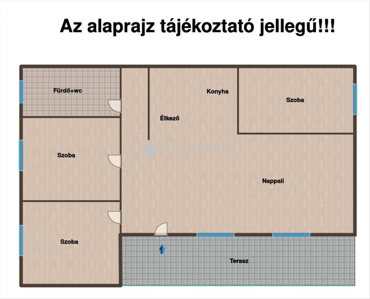 - előtér - 3 szoba - konyha és étkező- nappali - fürdő+wc - terasz