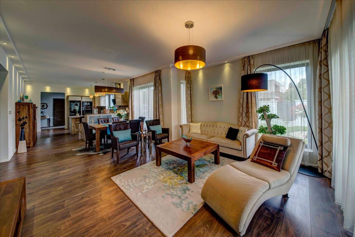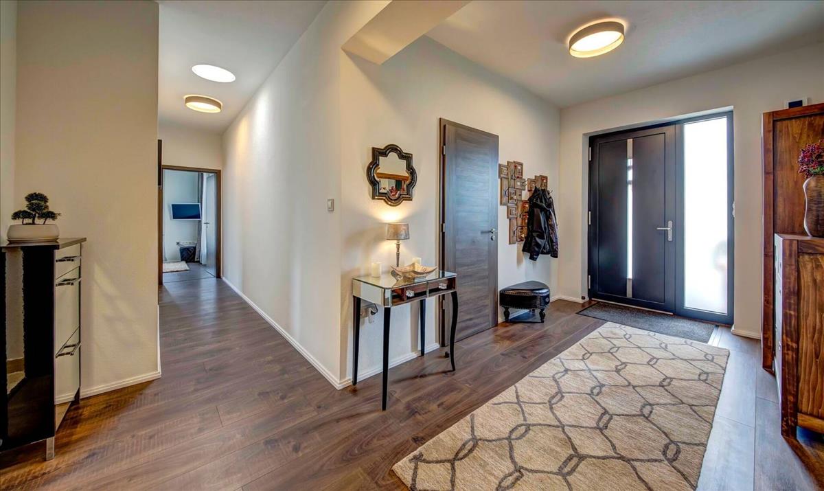 A hatalmas, fedett teraszon egy 10 fős kerti étkezőasztal található, ami ideális a szabadtéri étkezésekhez. Szerkezetileg kiváló minőségű, extra vastag nyílászárókkal, szúnyoghálókkal és modern energiatakarékos megoldásokkal felszerelt. a fűtést és hűtést padlófűtés, mennyezethűtés és egy teljes napelemes rendszer biztosítja, így egy négytagú család éves energiafelhasználása mindössze 190. 000 Ft.