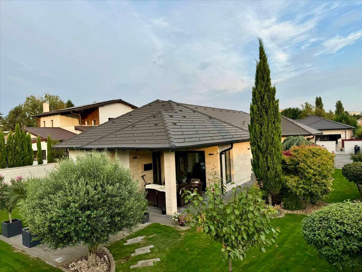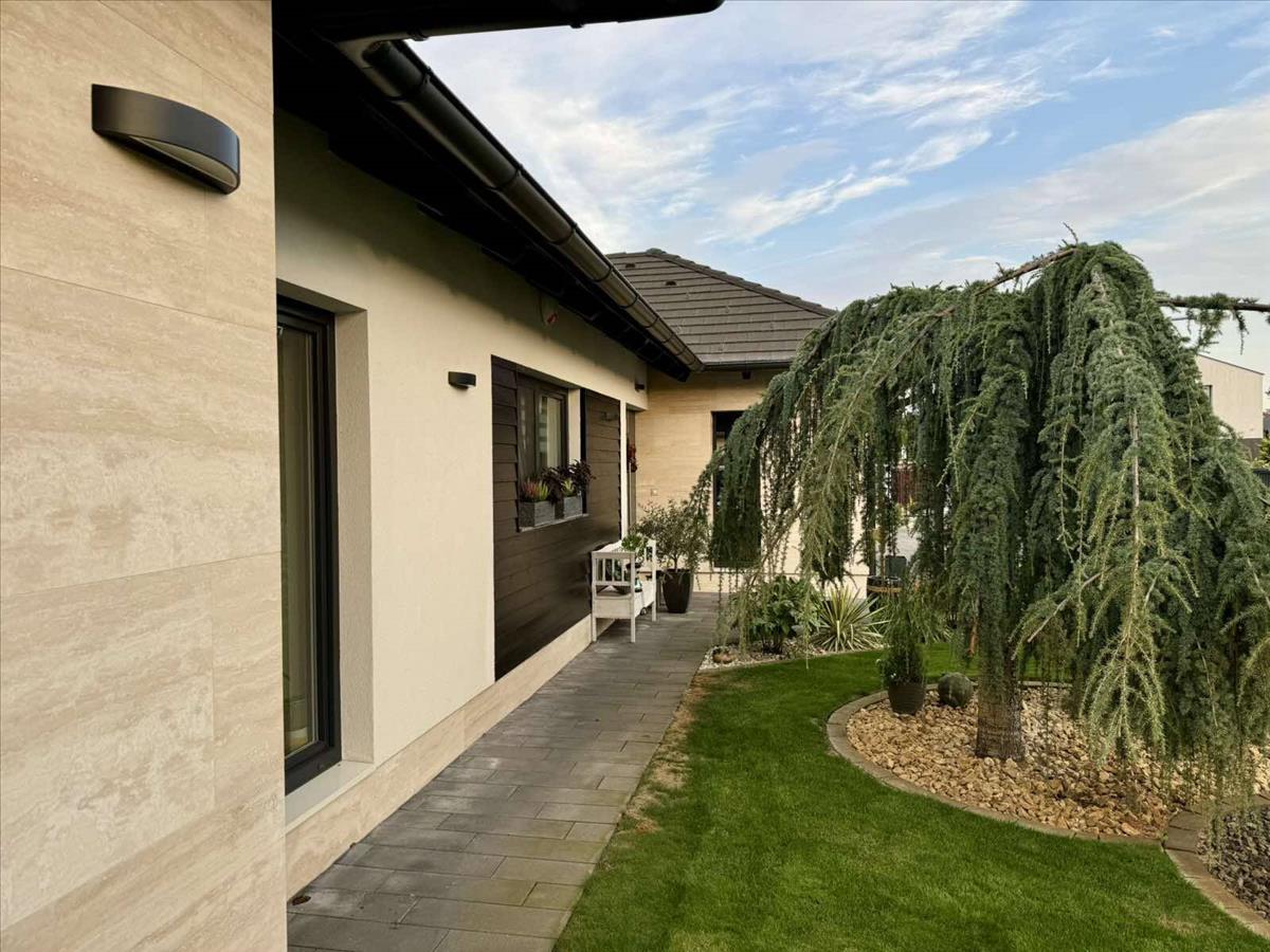 Győr-Moson-Sopron megye, Mosonmagyaróvár szívében, a Mosoni-Duna partjától mindössze 40 méterre, egy 2016-ban épült, 195 nm-es exkluzív, egyszintes luxus családi ház eladó. Az ingatlan egy csendes, gondosan parkosított területen helyezkedik el, ahol olajfák és pálmafák nyújtanak mediterrán hangulatot.A téglaépítésű ház elrendezése ideális: négy tágas szoba és két modern fürdőszoba, az egyikben egy 4 fős finn szauna is helyet kapott. a nyitott amerikai konyhás nappali tökéletes helyszíne a családi és baráti összejöveteleknek. a házhoz tartozó dupla garázs két nagyobb méretű autónak ad helyet, továbbá az udvarban további két autó számára található egy tárkövezett parkolóhely.
