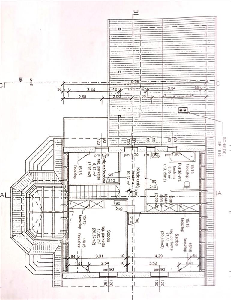-földszint: előszoba (4, 91m2), közlekedő, lépcsőfeljáró (9, 43m2), szoba (14, 96m2),