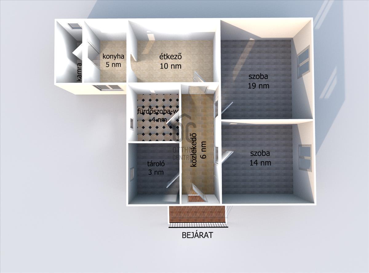- 2 szoba, konyha-étkező, spajz, fürdőszoba -wc, egyébb helyiség és közlekedő