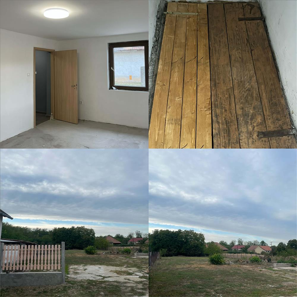Kívülről a ház hálózva és csemperagasztóval körbehúzva, így a homlokzat befejezése már az új tulajdonos ízlésére van bízva.