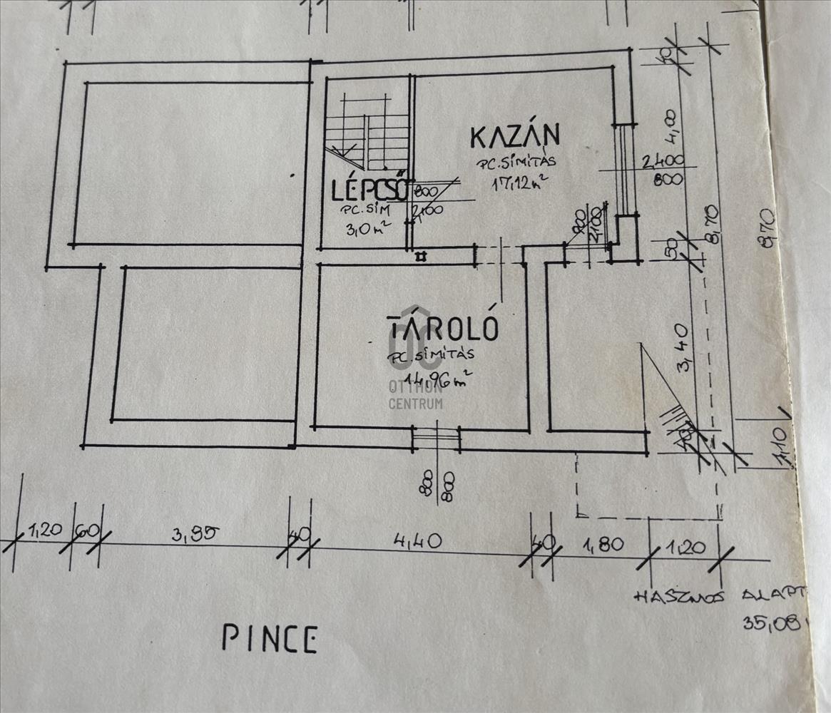 A 3 szintes lakóház pinceszintjén kazánház, méretes tároló ( hobby műhely) található.