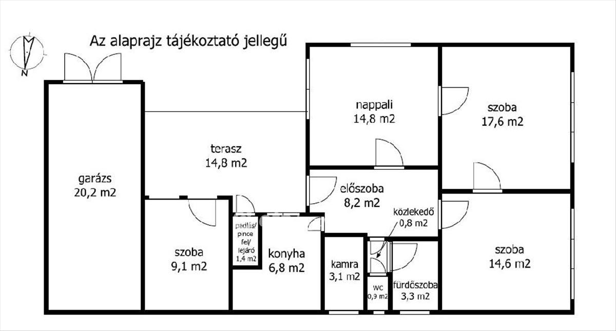 A ház a déli, nyugati tájolásból adódóan világos, jó fényviszonyokkal rendelkezik.