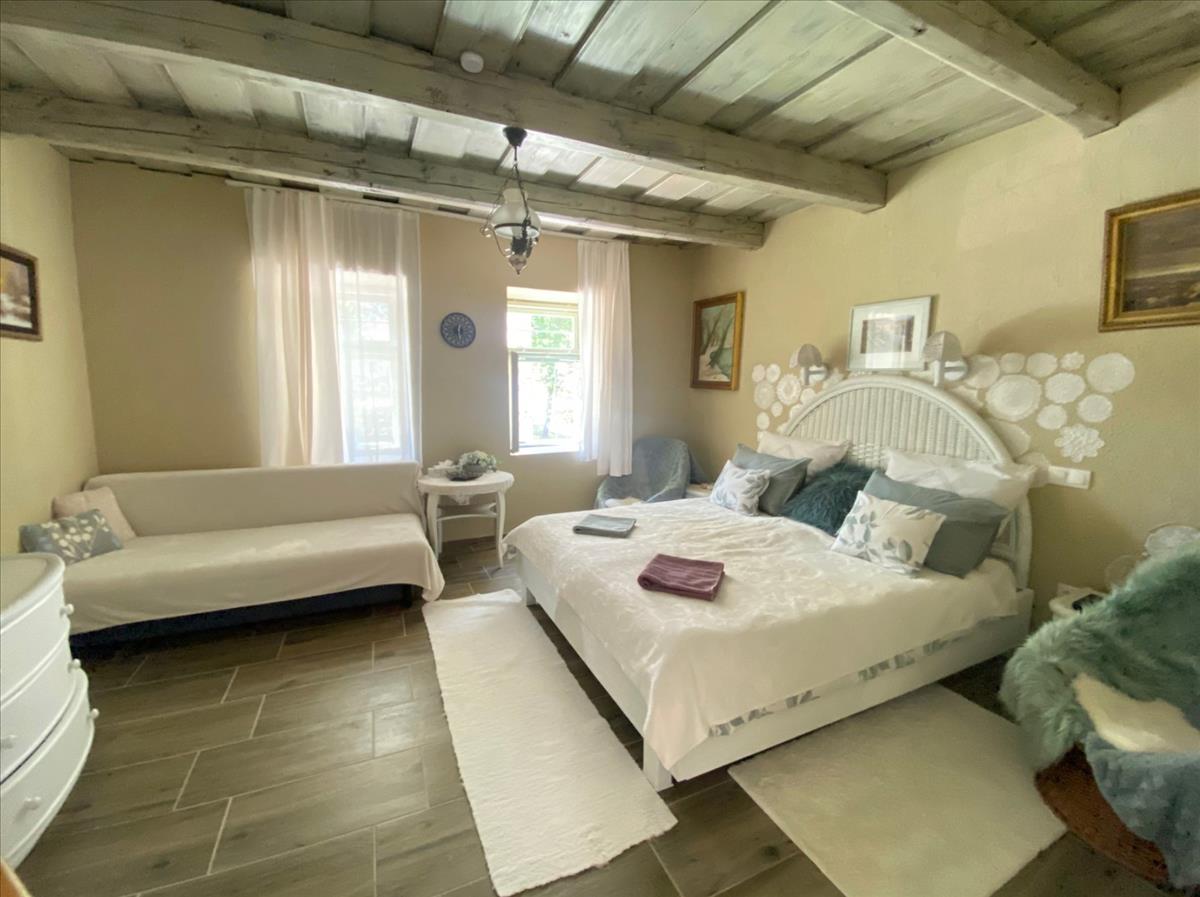 A belső tér modern és rusztikus stílusban ötvözi a falusi hangulatot és a mai kényelmet, minden részlet gondosan megtervezve.