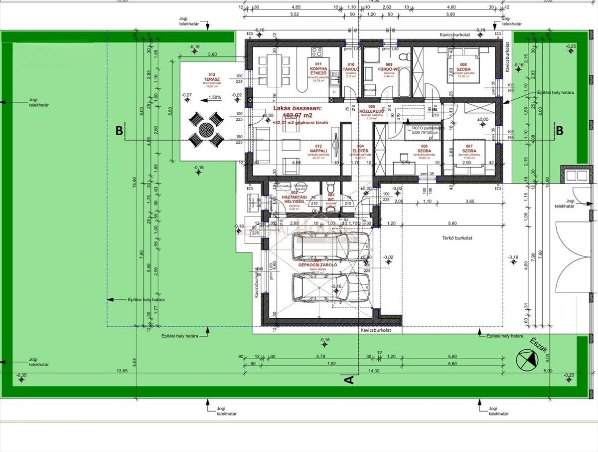 -Ház 102, 07 m2 + 19, 8 m2 terasz + 32, 37 m2 garázs