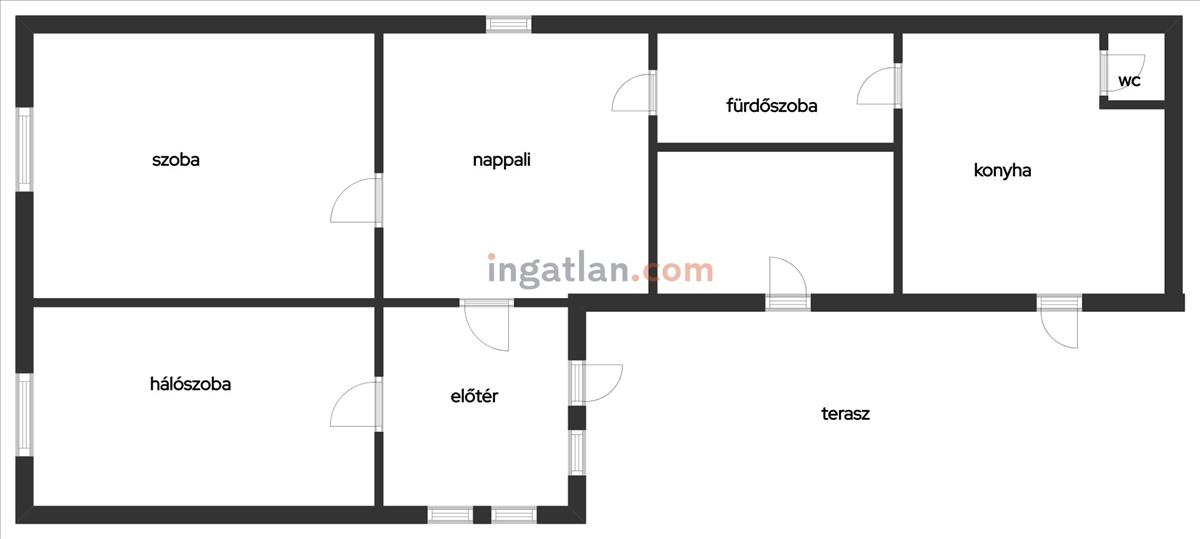 Az ingatlan 115 m² alapterületű, amelyben három jó elosztású szoba, konyha, előszoba, fürdőszoba, valamint különálló wc található.