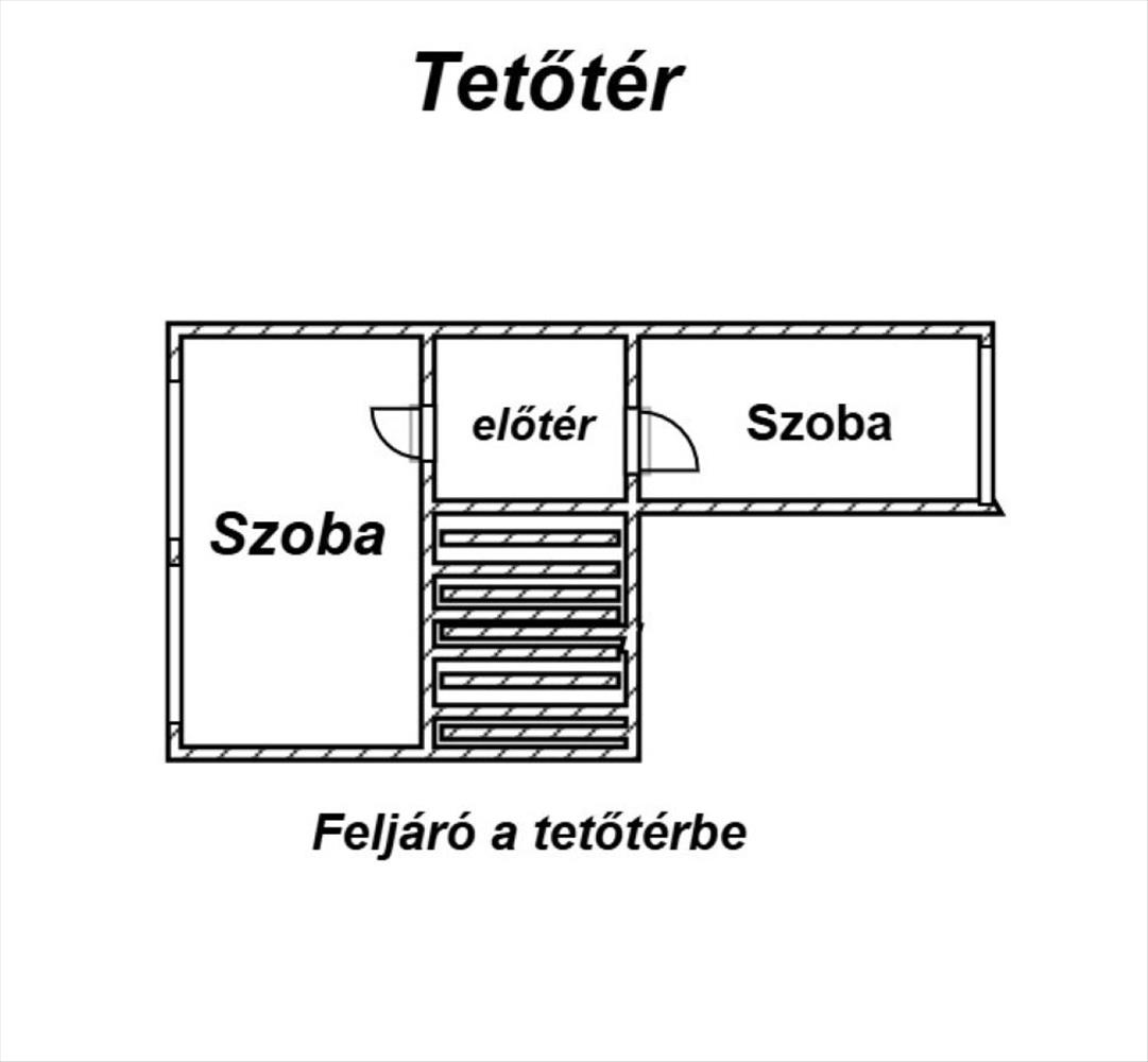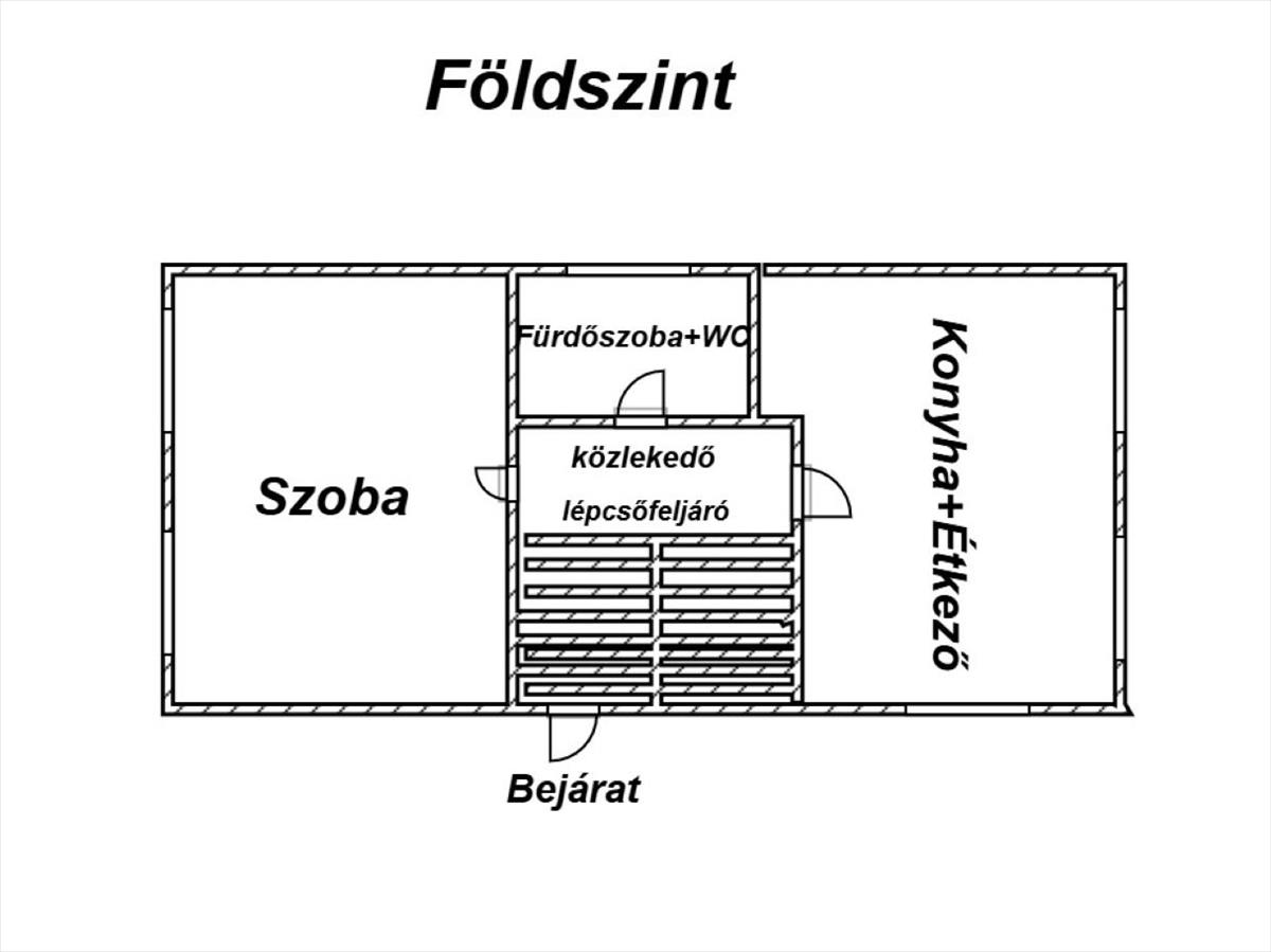 - Elosztása: Földszinten:1 szoba, Fürdőszoba, Wc, ( együtt van ), konyha+étkező. Tetőtérben: 2 szoba.