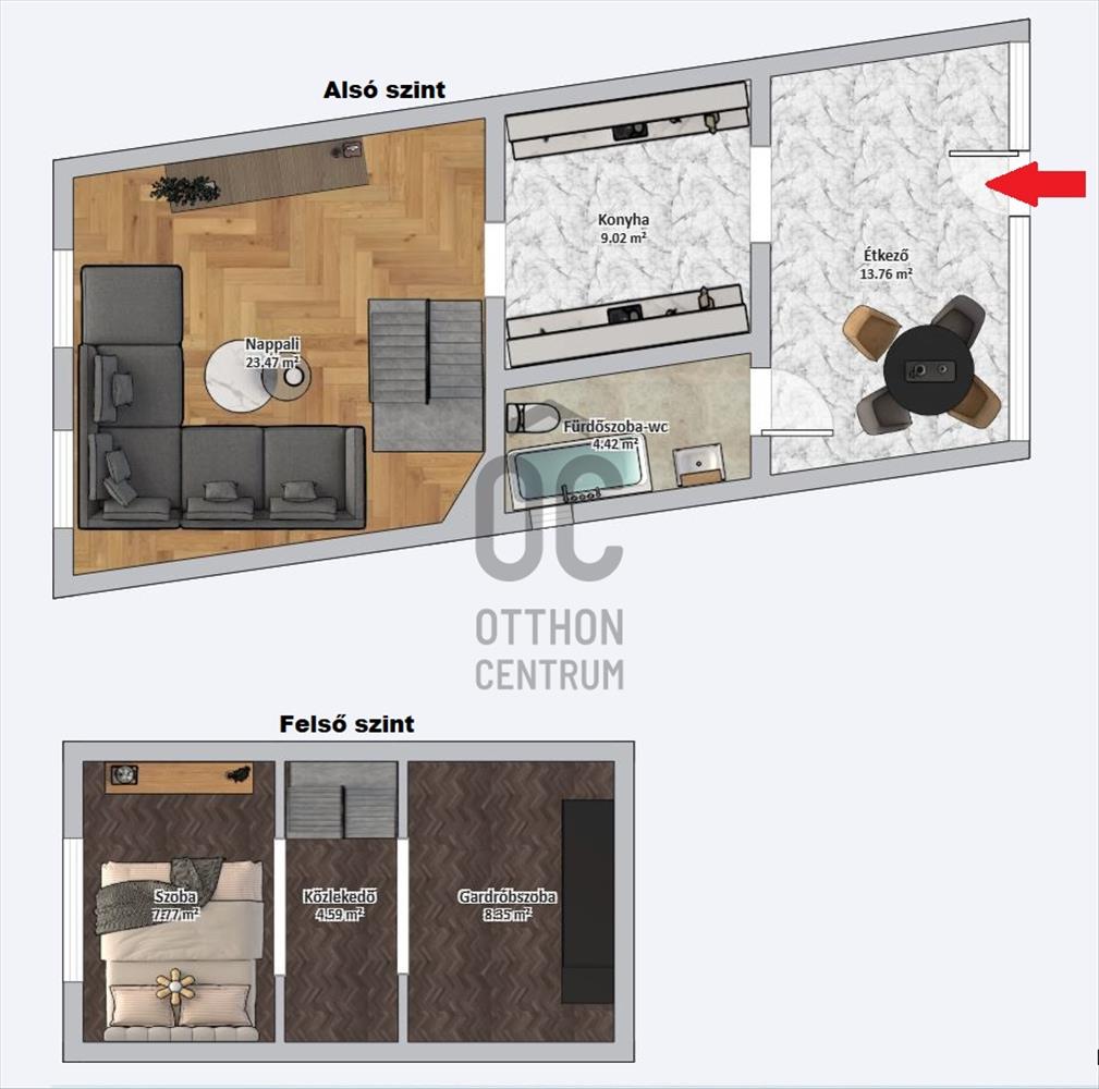- Nettó 71, 38 m2-es ház, tetőtér beépítéses.