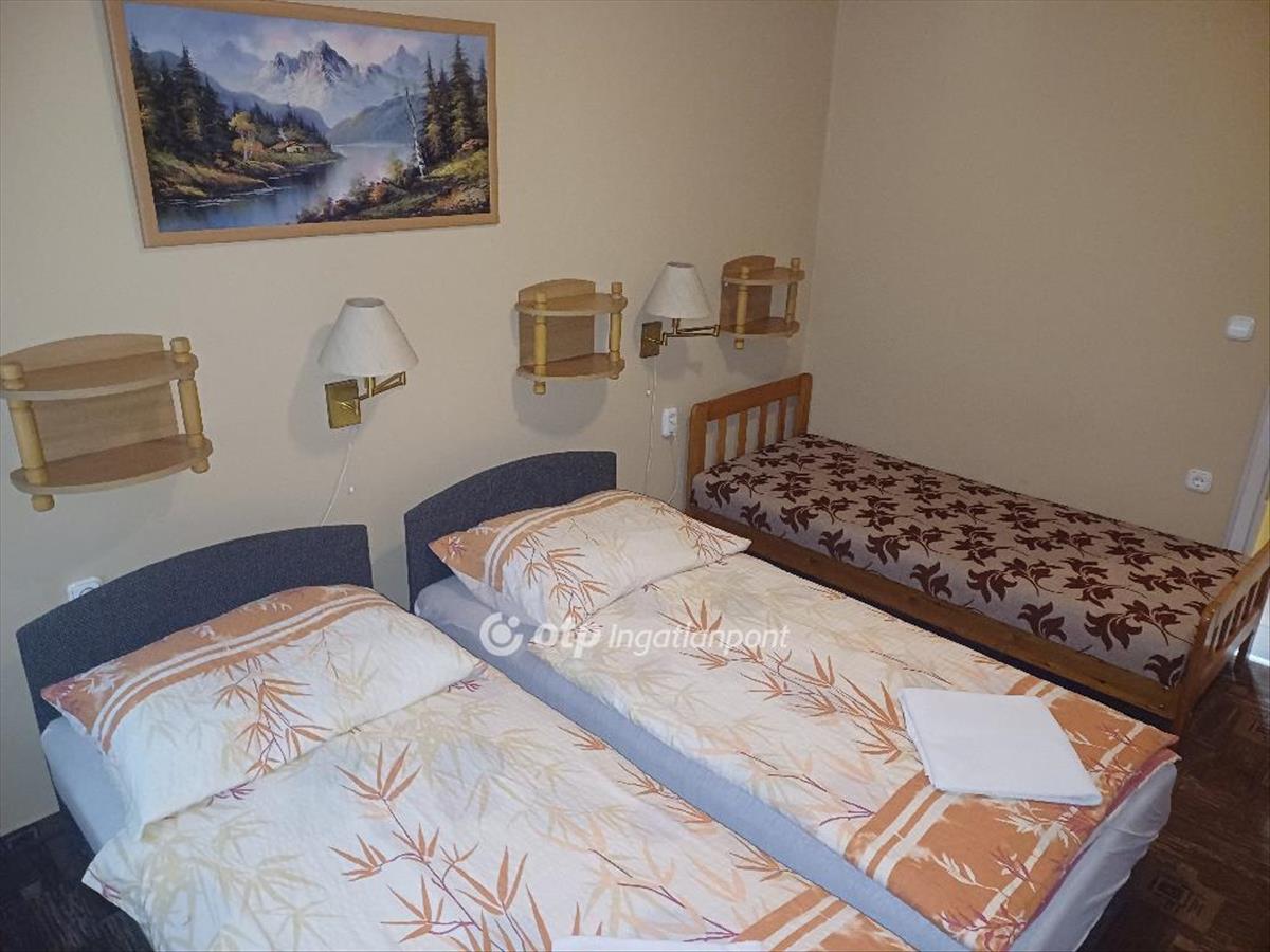 Az ingatlan teljesen bútorozottan eladó, így az új tulajdonos azonnal birtokba veheti vagy hasznosíthatja. Az épület elrendezése lehetővé teszi, hogy többféle módon hasznosítsák. a felső szinten 8 szoba található, az alsó szinten pedig 2 tágas szoba mellett 4 fürdőszoba kapott helyet, melyek közül az egyik sarokkáddal felszerelt. Minden szoba klimatizált, saját fürdőszobával és WC-vel rendelkezik, valamint televízióval ellátott. Az alsó szinten egy infraszauna is helyet kapott, ami tovább növeli az ingatlan kényelmét. a tetőtérben szintén bevezetésre került a víz-, gáz-, és villamoshálózat, így további hasznosításra is alkalmas.