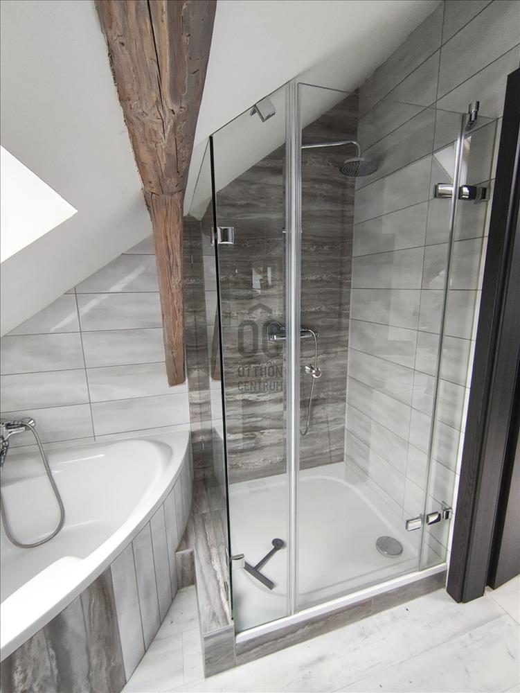 A fürdőszoba valódi komfortélményt nyújt: sarokkád és külön zuhanyzó.