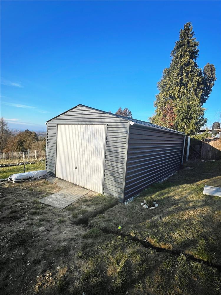 A telek elektromos kapun keresztül közelíthető meg, az udvaron pedig egy lemezgarázs is helyet kapott.