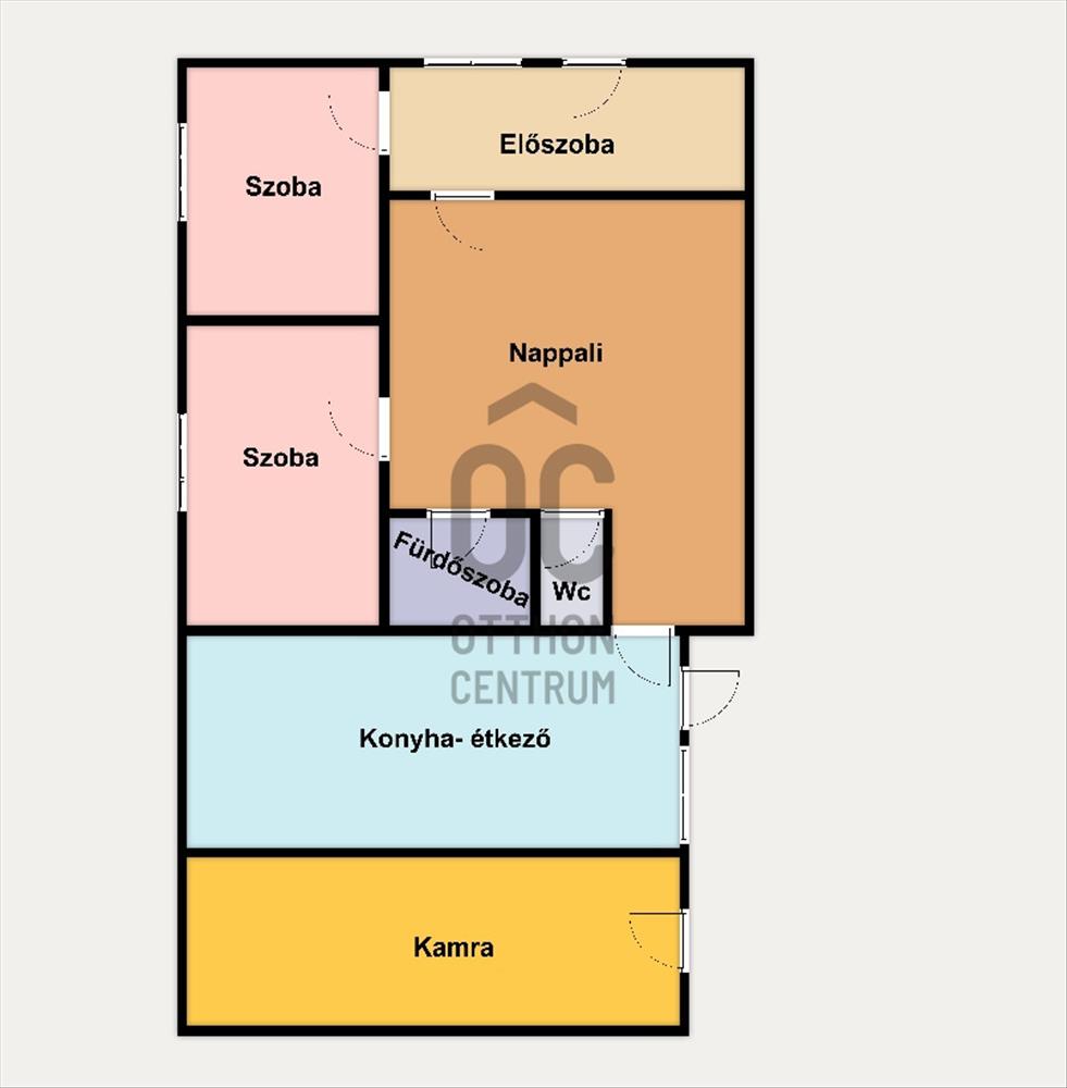 2 szoba, nappali, konyha, kamra, fürdőszoba, külön WC