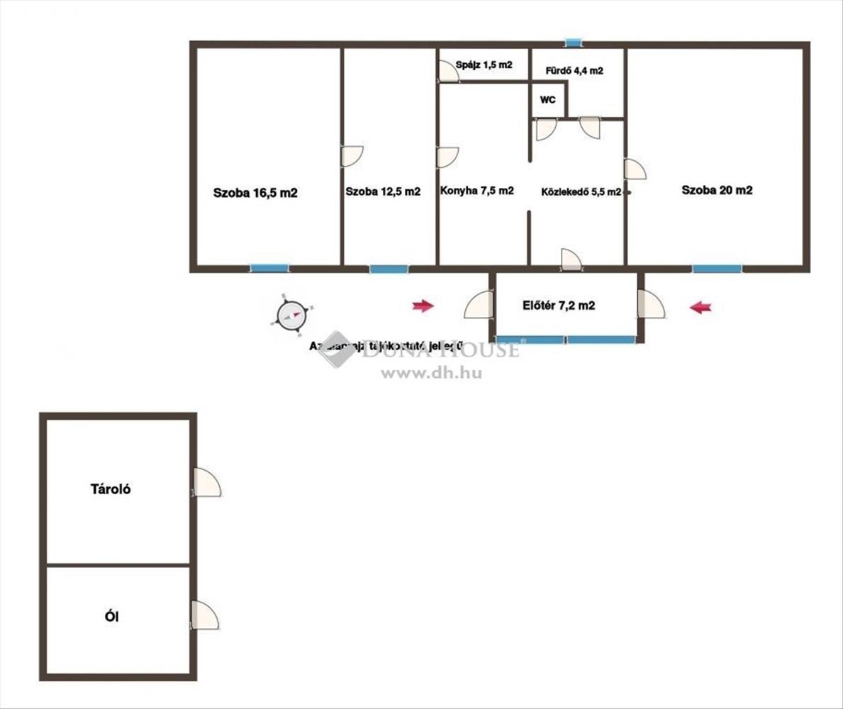- elrendezése praktikus, a konyhához kapcsolódik egy spájz, a fürdőszoba és a wc külön helyiségben van