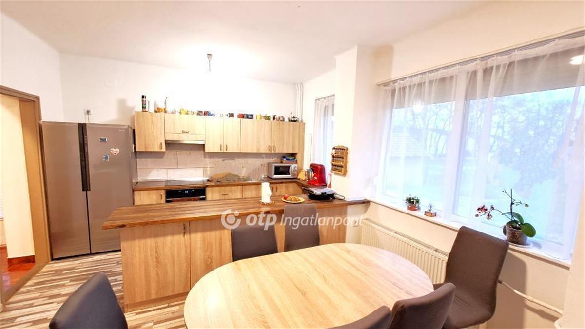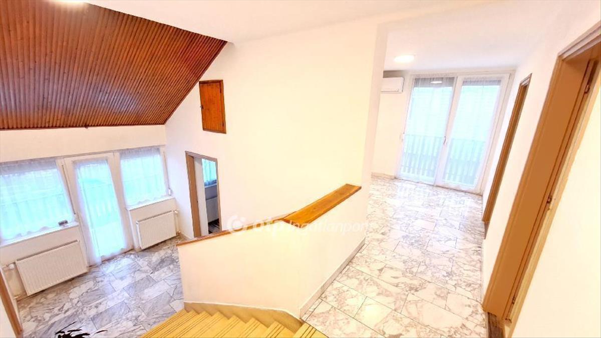 Nagykőrös, Szivárvány utcában 193 m2 nagyságú kétszintes családi ház, 887 m2 telken eladó. Az 1980-as évek elején épült szinteltolásos, tégla falazatú ingatlan a városrész csendes, kertvárosi, aszfaltozott utcájában található. Az otthon földszintjén egy előszoba, egy amerikai konyhás nappali, egy dolgozószoba, egy fürdőszoba-WC-helyiség, egy közlekedő, egy kamra, egy garázs és egy 23 m2 nagyságú terasz kapott helyet. a félemeleti szinten egy előszoba, egy lépcsőház, egy félszoba, egy szoba és egy 6 m2-es erkély található. Az emeleten három szoba, egy közlekedő, egy WC-helyiség, egy fürdőszoba, egy francia erkély és egy 13 m2-es loggia került megépítésre. Az épület alatt egy 45 m2-es, két oldalról nyíló, az udvar, illetve a lakótér felől egyaránt megközelíthető, két helyiségből álló száraz beton pince húzódik. a pince több gépjármű és egyéb eszközök tárolására alkalmas. Az épület beton alapon tégla falazattal, beton födémmel, fa tetőszerkezettel, rajta felújított antracit cserepes lemez héjazattal, valamint átlagban 25 cm kőzetgyapot szigeteléssel készült. Az ingatlan homlokzata részben 10 cm-es hőszigetelést és kőporozást kapott, a homlokzat többi része jó állapotú, szigetelésre vár. a külső nyílászárók műanyagok, három rétegű üvegezéssel, redőnnyel és szúnyoghálóval kivitelezettek, a belsők jó állapotú fa szerkezetűek, valamint új harmónika ajtóra cseréltek. Az otthon melegét Bosch gázcirkó kazán biztosítja radiátoros hőleadással, emellett alternatív fűtési megoldásként 6, 7 Kwh teljesítményű hűtő-fűtő klíma is rendelkezésre áll. a közművek közül a háromfázisú (3x25 a) és az egyfázisú villany (10 a), a gáz, a csatorna és a fúrt kút rendelkezésre áll. Vezetékes víz az utcában található. a családi ház hálózati visszatáplálós és szaldós elszámolású napelem rendszerrel ellátott. Az ingatlan két éve teljes felújításon esett át, amelyben a teljes villamoshálózat felújításra került, az aljzatok új járólapot és laminált parkettát kaptak. a közlekedők egy része márványlap burkolattal rendelkezik. Az otthon biztonságáról kamera-rendszer gondoskodik, az internet elérése optikai kábellel megoldott. Vásárlási szándék esetén a konyhabútor gépesítéssel (villanytűzhely villanysütővel, szagelszívó, beépített 15 terítékes mosogatógép, beépített szekrények) a vételár részét képezhetik.A ház oldalhatáron álló, körben bekerített, gépjárművek behajtására az aszfaltozott út felől két kapubejáró biztosított. Az udvar rendezett, az új tulajdonos azt saját igényének megfelelően alakíthatja ki.
