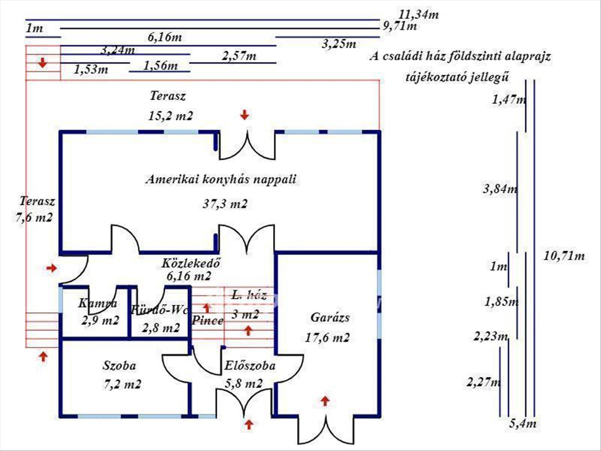 A családi ház mérete és elosztása miatt ideális lehet többgyermekes családok számára, vagy akár kétgenerációs lakhatásra is.