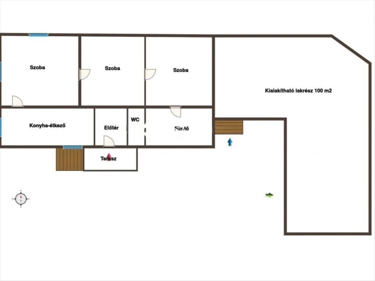 A ház egyik felében jelenleg egy kb. 100 Nm-es, 3 szobás lakrész található, amelyhez pince is tartozik, míg az épület másik része felújításra vár, így az új tulajdonos saját elképzelései szerint alakíthatja ki.