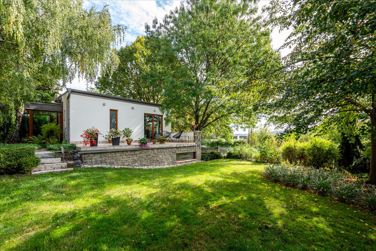 Nagykovácsi Cseresznyés részén áll ez a ház, melynek tervezésekor az volt a fő szempont, hogy a meglévő fák megmaradjanak – a végeredmény egy építészeti remekmű, ami körbeöleli az élő természetet. a fák árnyéka természetes hűtést és páratlan atmoszférát biztosít. a lehető legtöbb helyen hatalmas üvegfelületek engedik be a fényt és szinte elmossák a bel- és kültér közötti határokat. a ház egyik különleges építészeti megoldása a télikert, amely olyan érzetet nyújt, mintha közvetlenül a kertben sétálnánk.