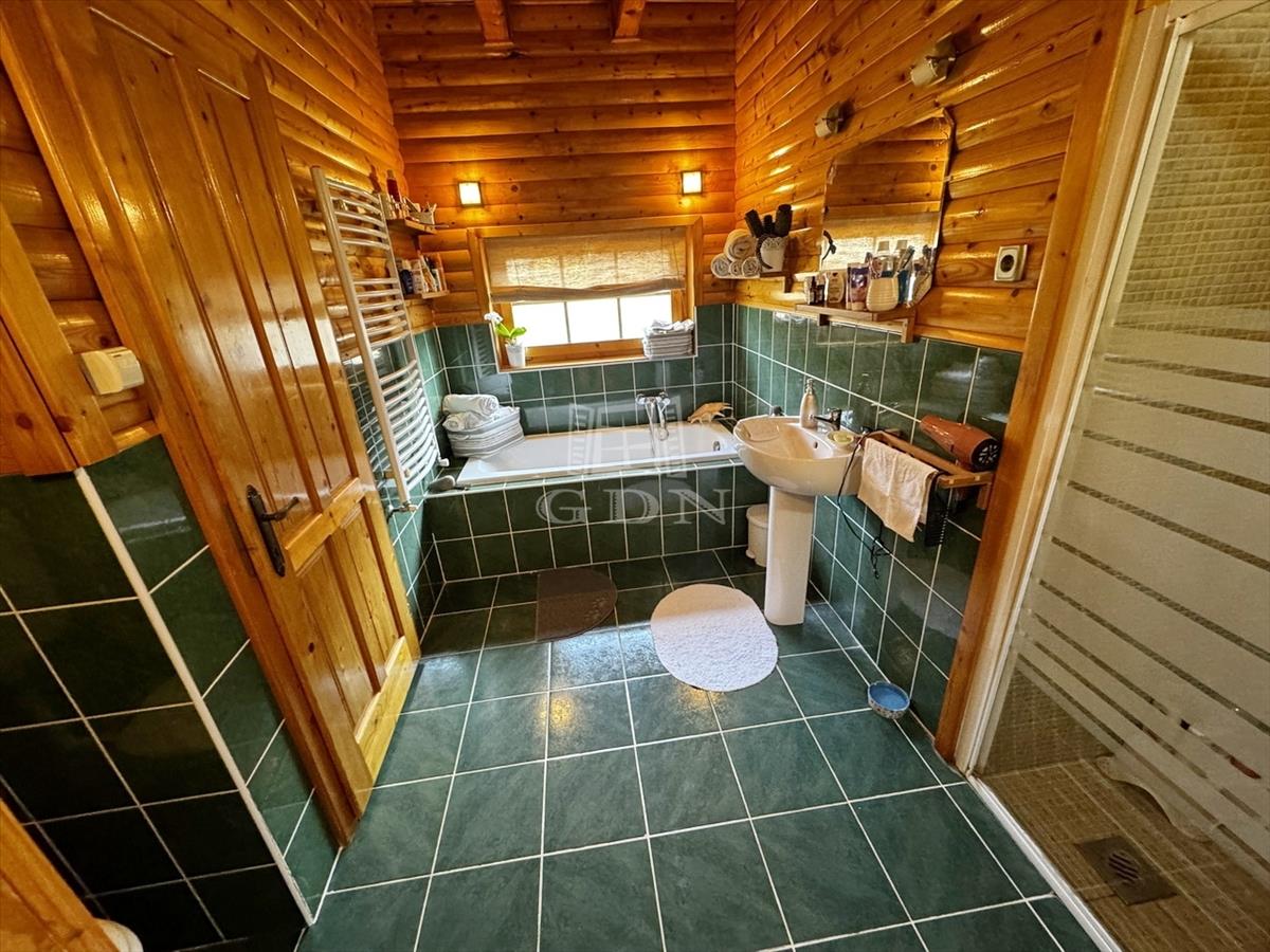 Nagykovácsi csendes, zöldövezeti utcájában, közvetlenül az erdő szomszédságában kínálunk eladásra egy kiváló állapotban lévő, könnyűszerkezetes, rönkház jellegű családi házat. a ház nyaralóhangulatot áraszt, mégis teljes értékű otthonként szolgálhat.