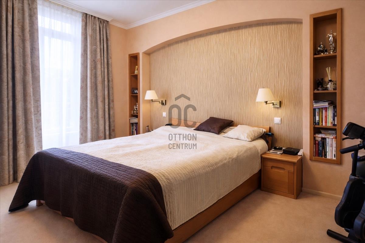 2 nappali, 5 külön nyíló hálószoba, 3 fürdőszoba, 32, 2 m²-es, kertkapcsolatos terasz, 16 m²-es és 11, 5 m²-es erkély, déli tájolás, tehermentes jogi státusz.