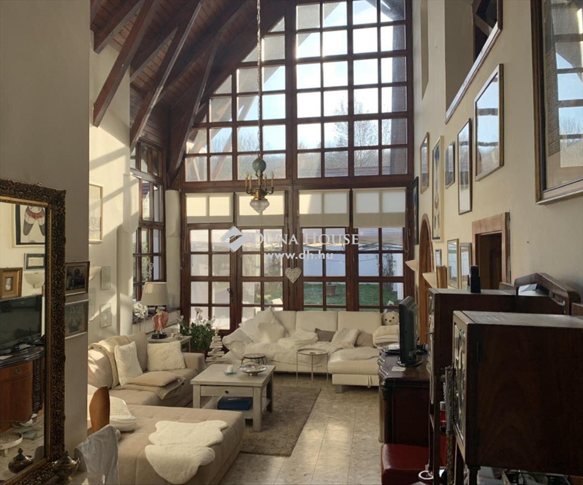 Termèszetvedelmi terûlet kôzelèben eladó gyönyörű, egyedi kialakítású hàz.A fôèpûlet Makovecz stílusú, ahol a nappali 10 méteres belmagasságú, tágas terének és sok ablakának köszönhetően rendkívül világos. a felsô szinten 3 szoba és 3 fûrdôszoba helyezkedik el. Az also szinten egy tágas nappali, vendègszoba, ebèdlô és konyha, valamint egy külön wc található.