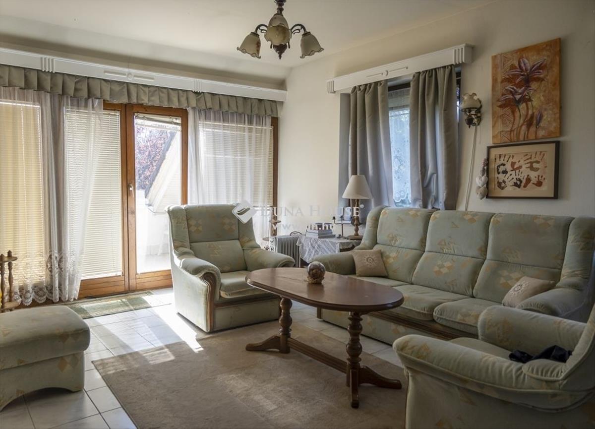 Nagykovácsiban az Amerikai Iskola szomszédságában, egy csendes utcában, erdő széli, gyönyörű panorámás családi ház eladó. Az 1990-ben épült családi ház 3 szinten (alagsor + földszint + emelet), összesen cca 250 m2 alapterületen, a földszinten és az emeleten is nappalival, külön konyhával, külön fürdőszobával és összesen 5 hálószobával kínál otthont új tulajdonosának. a földszinti és az emeleti teraszokról is különböző tájolású, csodás panorámás kilátásban gyönyörködhetünk. a telek 480 m2, a kerítésen túl pedig már az erdei túraútvonalak indulnak. a hangulatos erdőre néző buja kertben a nyári beszélgetésekhez egy kellemes szaletli került kialakításra, mellette kényelmes füves területtel, illetve virágoskerttel. a kerítésen belül összesen három autó számára találunk fedett beállót. a házon lévő cseréptető tökéletes állapotú, fűtése gázkazánnal, illetve cserépkályhával működik. a ház 3 szinten:földszinta földszint központi helyisége a hangulatos 31 m2 alapterületű nappali, ezenkívül helyet kapott itt további két hálószoba, konyha, kamra, fürdő, wc és előszoba. a bejáratnál egy erdőre néző 16 m2-es fedett terasz, a nappaliból kilépve pedig egy kertre néző 10 m2-es terasz szolgálja a család pihenését. EMELET:Az emelet szintén teljes értékű lakásként használható egy 33 m2 alapterületű nappalival, két hálóval, fürdőszobával és konyhával, így két generáció kiszolgálására is alkalmas az ingatlan. Az emeleti teraszról és az ablakokból kitekintve csodálatos panoráma tárul elénk és a zöld környezetnek köszönhetően állandóan friss levegőben lehet részünk. ALAGSOR:A 98, 3 m2 alapterületű alagsorban további szobák és helyiségek találhatók, így ott egy külön lakrész is kialakítható saját, elszeparált bejárattal. a ingatlan per, teher, és igénymentesen eladó. További kérdéseivel keressen bizalommal és én örömmel körbevezetem Önt következő otthonában!
