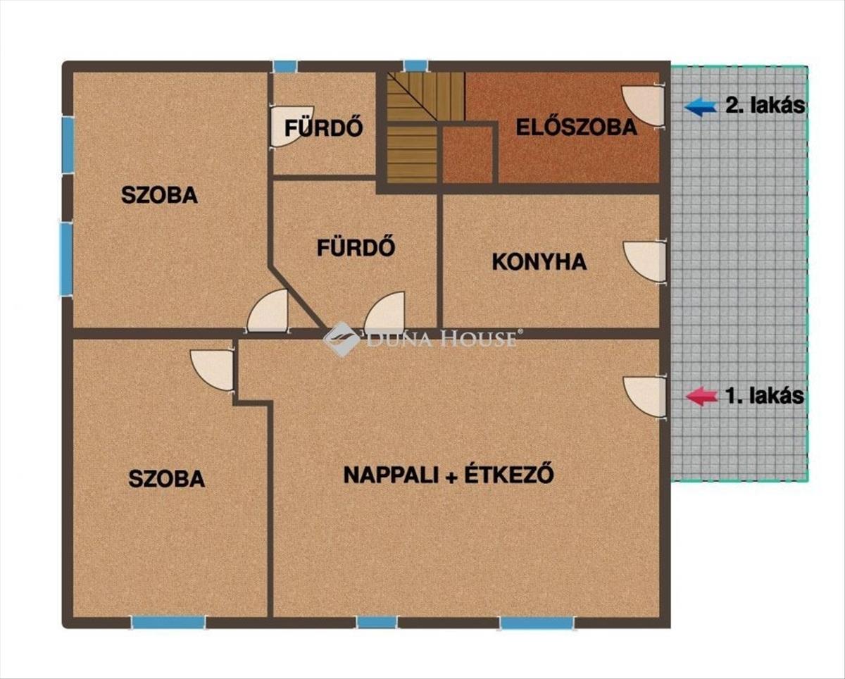 Ez a háromszintes, összesen 260 m²-es téglaépület a nyugodt, zsákutcás Nagykovácsi Ófaluban található. Ebből 160 m² a lakótér, a fennmaradó területet a garázs és a tárolók teszik ki. a ház jelenlegi kialakításában két külön lakásból áll, de akár egybefüggő családi házként is használható sőt, az alsó szinten iroda vagy egy harmadik lakás is kialakítható. Alsó szint garázs és tárolók. Az alsó szinten kb. 98 M² található, amelyben egyállásos garázs és több tároló kapott helyet. Az elrendezés lehetőséget ad arra, hogy itt akár egy önálló lakás vagy iroda is létrehozható legyen. Középső szint nappali + 2 háló + 2 fürdő. a kb. 100 M²-es középső szint jelenleg lakásként funkcionál. a tágas nappali, a különálló konyha, valamint két hálószoba és két fürdőszoba ideális elosztást kínál család számára. Tetőtér külön bejárattal, amerikai konyhás nappali + háló. a felső szint külön bejáraton keresztül közelíthető meg, így önálló lakásként is működhet. a kb. 65 M²-es tetőtérben egy amerikai konyhás nappali, egy hálószoba, egy fürdőszoba és egy külön wc található praktikus és hangulatos kialakítással. Felújítás és műszaki tartalom.