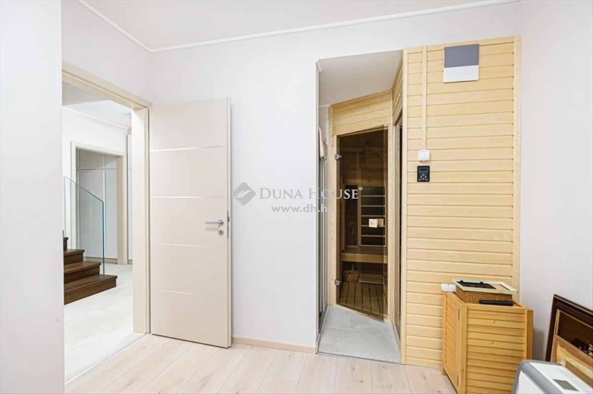 Magas minőségű-modern, panorámás családi HÁZNagykovácsi közkedvelt részén, panorámás utcában eladó két külön utcából is megközelíthető, 2 lakrészes, így akár két generációnak is tökéletesen használható modern, nettó 243 nm + 80 m2 teraszos, családi ház. Környezet- zöld, csendes környezet- panorámás utca-aszfaltos útról lehet megközelíteni a házat- Amerikai iskola 10 percreÉPÜLET- saját részre épült- igényes anyagfelhasználás és kivitelezés- parkosított, automata öntözős, rendezett kert, - 2 utcára nyíló 780 m2 telek- két utcáról megközelíthető belső 3 szintes, két generáció számára kialakított:-Egyik utcai rész (120 m2) tágas előszoba, 2 háló, panorámás nagy nappali-konyha -étkező. 1 Tusolós mosókonyhás fürdő, külön wc, 1 modern akadálymentes kádas fürdőszoba WC-vel. -Másik utcai bejárattal (111 m2 + garázs) nappali-konyha-étkező, 2 háló, 1 tusolós fürdő WC-vel, 1 vendég wc, kombi szauna tusolóval, külön WC-vel, kondi szobával, kamra. - a belső impozáns, üvegkorlátos, 3 szintet összekötő lépcsőn lehet feljutni a teljes körpanorámás tetőteraszra, ahol egy 12 m2-es konyha-étkező lett kialakítva- Az ingatlan területén 6 autónak van telken belül beállási lehetősége (1 autónak a garázsban + 1 autónak a garázs előtt fedett beállóban + 1 autónak a napelem alatti fedett helyen + 3 autónak telken belül. )MŰSZAKI tartalom- Hőszivattyús padló fűtés-mennyezet hűtés 11, 2 kW teljesítményű napelem rendszerrel kiegészítve- Műanyag nyílászárók- Elektromos redőnyök, szúnyoghálók- Mindhárom szinten német gépesített konyhabútor- Rengeteg beépített szekrény- Az alsó szinten tűzteres, fával és akár elektromossággal is működtethető cserépkályha, ami a középső szintet is fűti-Kerti automata öntözőrendszer földalatti víztárolóval- Kiépített kamera és riasztórendszer- Kombi szaunaKifejezetten ajánlom olyan csendet, nyugalmat kereső családoknak, akik a minimális rezsiköltség és a környezettudatosság mellett az extra kényelmet is keresik. Az ingatlan előzetes időpont egyeztetéssel rugalmasan megtekinthető.