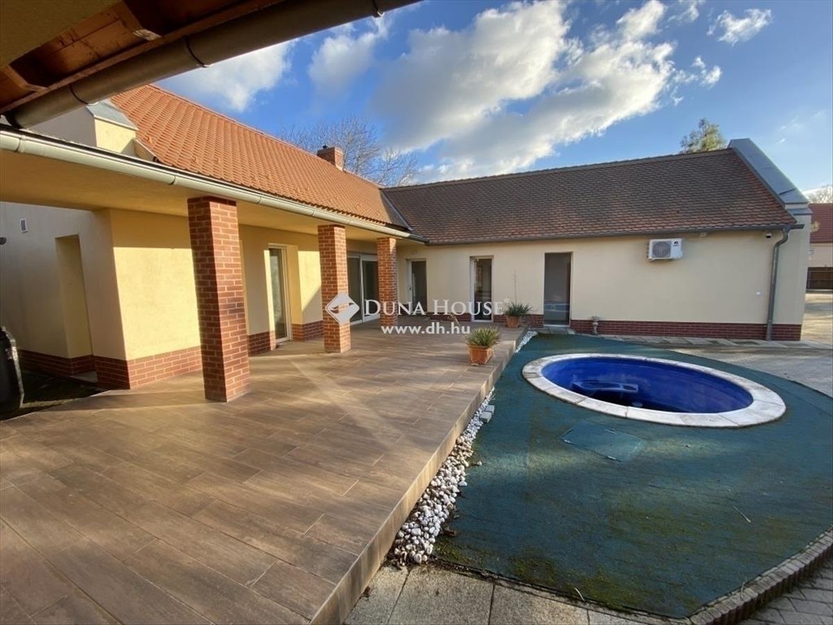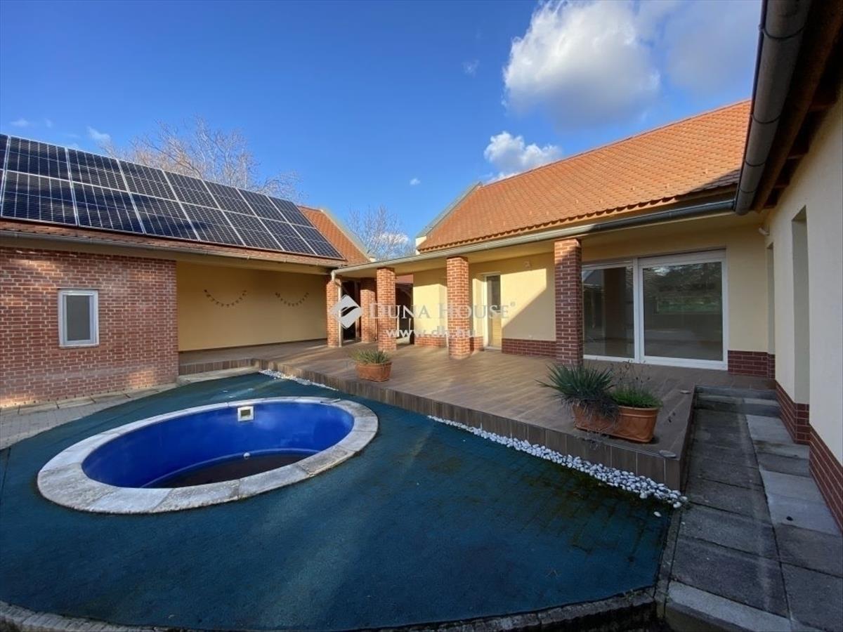 Nagykozárban, Pécstől 10 percre, eladó egy 150nm alapterületű, amerikai konyha nappalis, 4 hálószobás, 3 fürdőszobás, nagy teraszos, modern kialakítású, egyszintes családi ház, 3 állásos garázzsal, fedett autóbeállóval, 2739nm-es területtel. Az ingatlan U alakban körbe öleli a mediterrán teraszt és a medencét, ezzel teljes intimitást biztosítva. a ház déli fekvése és nagy méretű nyílászáróinak köszönhetően rendkívül világos. a tágas nappaliból és az étkezőből közvetlen kijárat nyílik a mediterrán teraszra és a medencéhez. a 4 külön nyíló hálószoba közül az egyik saját fürdőszobával rendelkezik. a ház elrendezése nagyon átgondolt, mivel a hálószobák teljesen elkülönülnek a közös terektől, ezzel nem zavarva a pihenni vágyókat. Az ingatlanban gardrób és háztartási helyiség is helyet kapott. Az udvarban található egy 3 állásos garázs, elektromos kapuval, elektromos autó töltővel, továbbá egy fedett 3 állásos autóbeálló. a garázsból további háztartási helyiségek nyílnak, melyek fűthetők és mosdóval felszereltek. a terület szépen gondozott, térkővel burkolt. Extrák: - 20cmes külső szigetelés- Purhabos födém szigetelés- Fűtés gáz Cirkó + klíma, padló fűtés, szobákban radiátor- Elektromos alumínium redőny- 10 kw napelemes rendszer- Elektromos autó töltő- Elektromos garázskapu- Elektromos kapunyitás- Kamera rendszer - Klíma- Riasztó- MedenceA ház méreteit és adottságát tekintve, akár nagycsaládosok számára, illetve a tágas életteret kedvelőknek is tökéletes választás. Ingatlan tehermentes, rövid időn belül költözhető! Amennyiben felkeltette érdeklődését, keressen bizalommal!