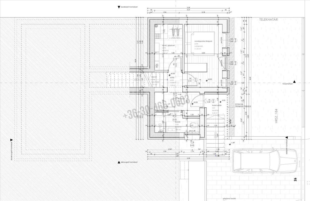 184 hrsz. (~1200 M²): két épülettel beépített telek