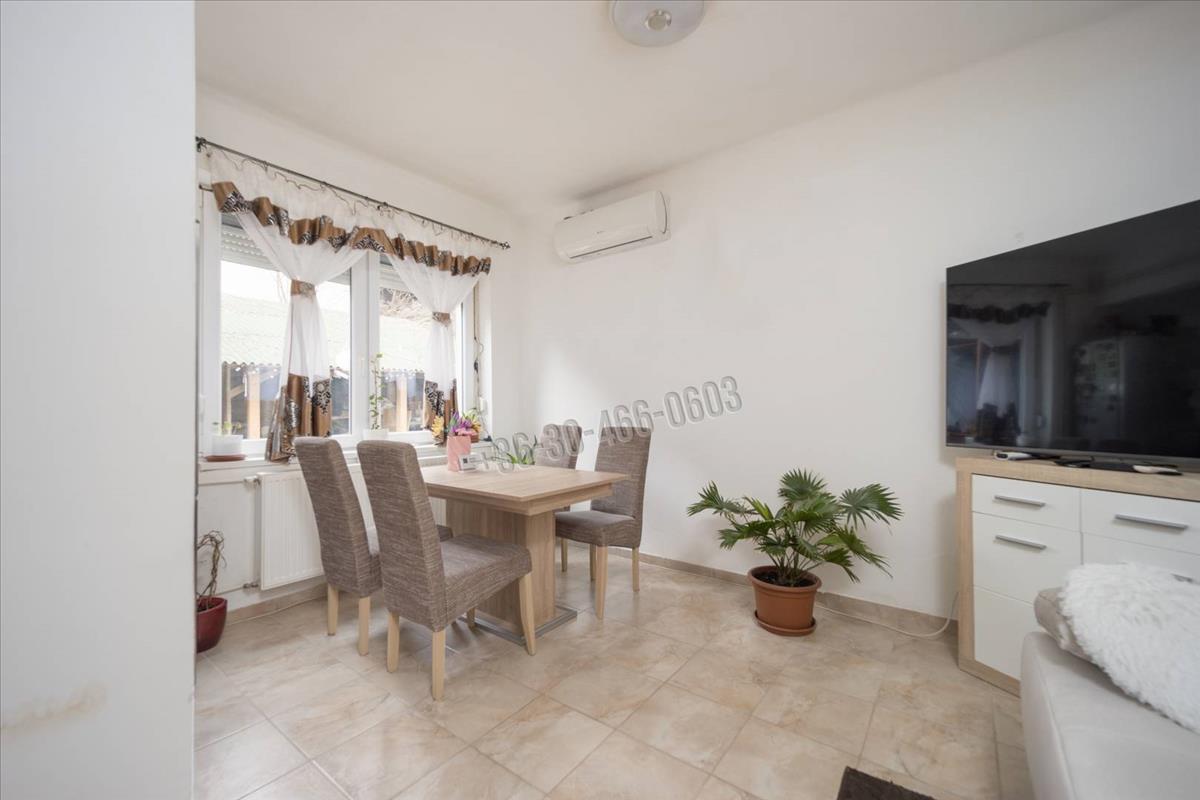 Az összkomfortos házban minden közmű elérhető, a fűtést és melegvizet gázkazán biztosítja, valamint a nappaliban hűtő-fűtő klíma is telepítésre került.