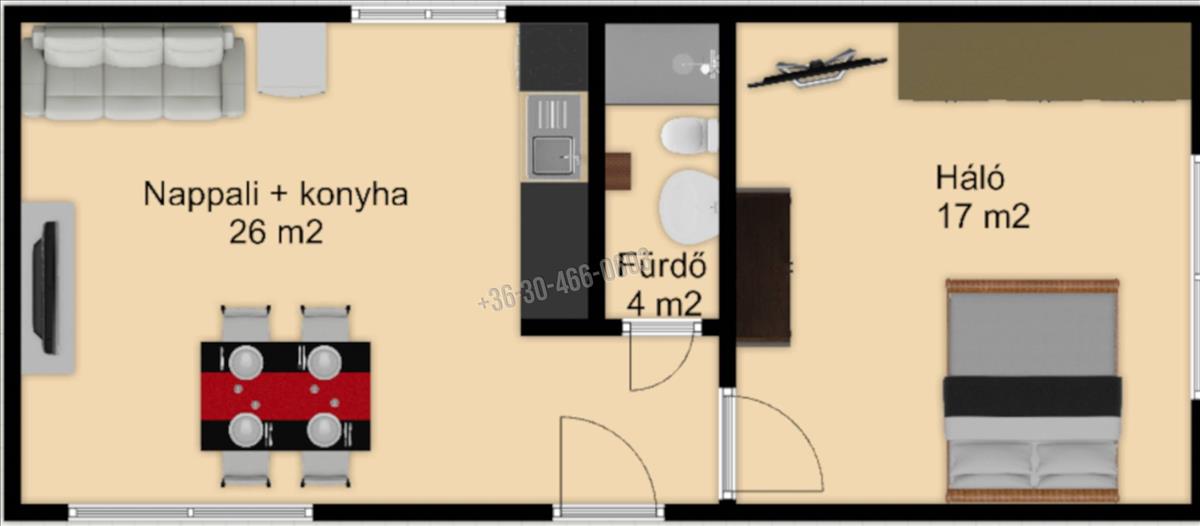 Nappali + konyha, 26 m2