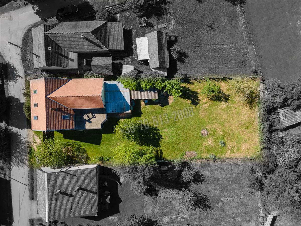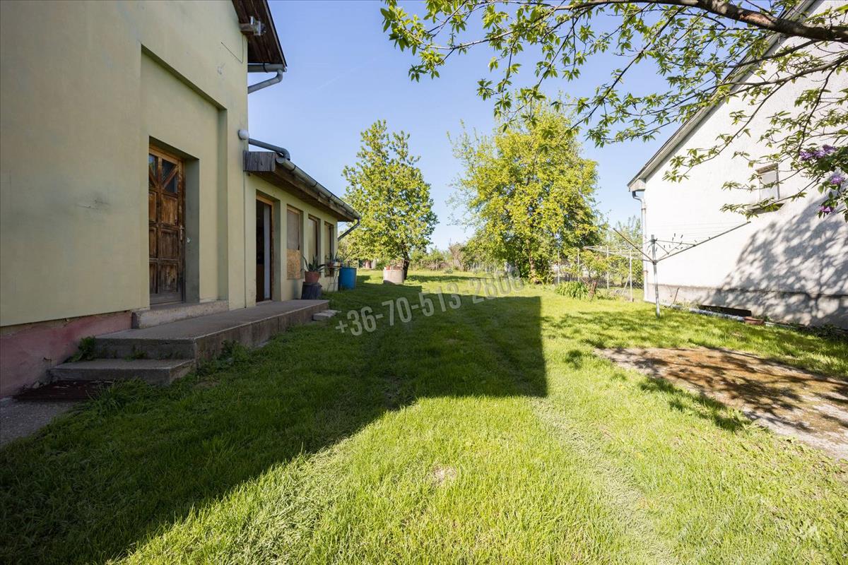 A ház egy 965m2-es, füvesített telken helyezkedik el, fa tárolóval és autóbeállóval két jármű részére. a kertben cseresznye, szilva, alma, mogyoró és vadgesztenye terem, valamint egy ásott kút szolgál segítségünkre akár locsolásra is.