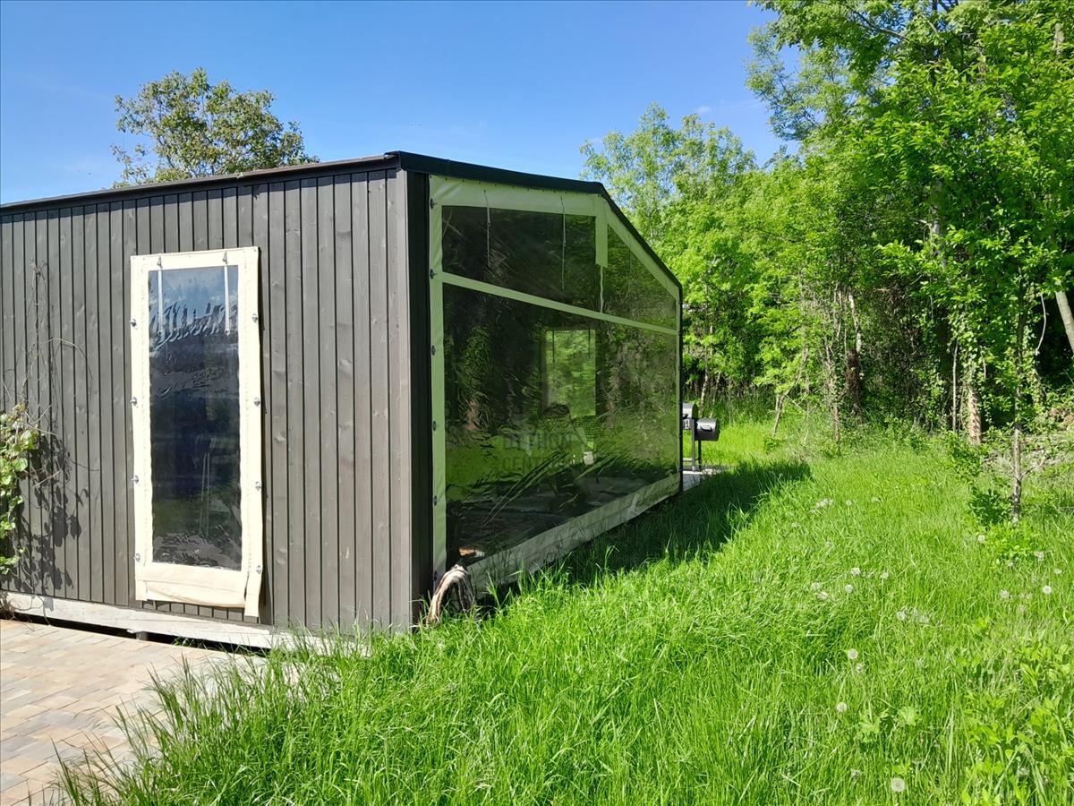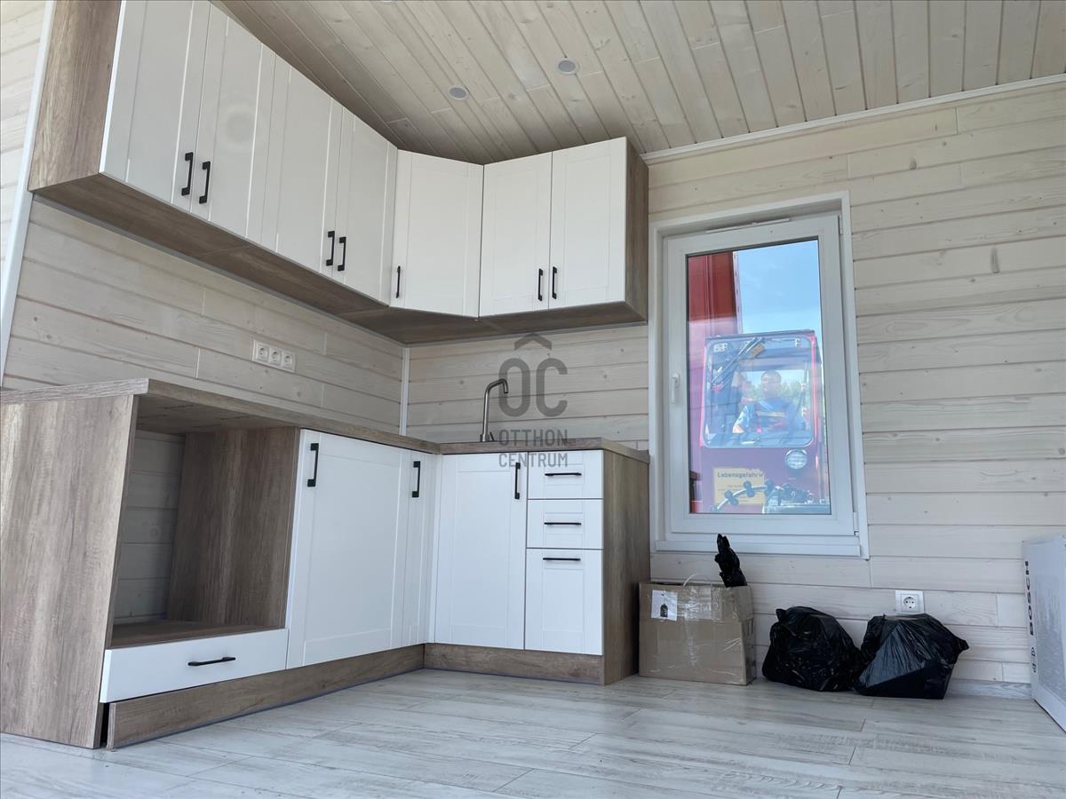 A telken 85 nm -es mobil-házat állítottak fel, a víz, villany, csatorna bevezetve, gáz az utcában.