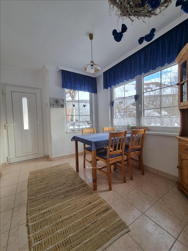 Veszprém vármegyében, Pápától 10 km-re a Bakony lábánál kínálok megvételre 477 m2-es telken található 75, 5 m2-es nyaraló jellegű családi házat. a bakonyi hangulatú település jól megközelíthető tömegközlekedéssel, gépkocsival. a vidéki stílusú ház az 1960-as évek végén épült, Több felújításon esett át. Statikailag és szerkezetileg jó állapotú. Falazata tégla és kő, tetőszerkezete új, padlástere gondozott. Valamennyi nyílászáró anyaga műanyag, utca fronton redőnnyel. a ház elosztását tekintve áll: 2 egész szobából, 1 félszobából, előszobából, konyhából, fürdőszobából és wc helységből, kamrából, és 2 teraszból. a házhoz egy nyári konyha jellegű, a házhoz közvetlen csatlakozó épületrész is tartozik. Az udvaron szép parkosított előkert, kút, verem-borospince, piknikező, garázs, fedett terasz találhatók. Itt élvezheti a csendet és nyugalmat a vidéki környezetet. Téli hideg napokon a ház melegéről hűtő-fűtő klímák és kályha, kandalló tud gondoskodni. a családi ház igény szerint bútorozva is megvásárolható. Ez az ingatlan nyaralónak vagy kisebb otthonnak ideális. Ajánlom mindazon érdeklődők figyelmébe, akik falun, de mégis egy városhoz közel, vonzó természeti környezetben, barátságos, biztonságos és nyugodt, családias helyen keresnek otthont. a településen található erdőkkel, hegyekkel körülvett 34 hektáros víztározó-tó, amely nyaranta kellemes kikapcsolódást nyújt a pihenni vágyóknak, a környék pedig számos túrázási lehetőséget kijelölt túraútvonalakon. a tó 10 perc sétára található a háztól. Az OTP Ingatlanpont teljes körű ügyintézéssel áll az eladók és a vevők rendelkezésére. a kínálatunkból választott ingatlan finanszírozásához kedvezményes hitelkonstrukciót kínálunk. Az adásvételi szerződés megkötéséhez igény szerint megbízható ügyvédi közreműködést biztosítunk, és segítséget nyújtunk az adásvételhez kapcsolódó ügyek intézéséhez is. Amennyiben felkeltette érdeklődését az általam kínált ingatlan, keressen bizalommal. FIX 3% lakáshitelre megvehető