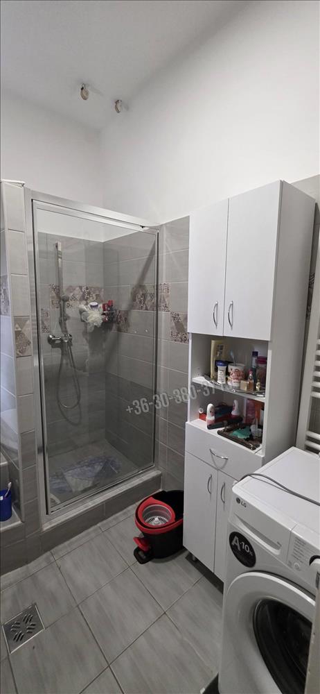 A modernizált fürdőszobában sarokkád és zuhanyzó is helyet kapott, így minden igényt kielégít.