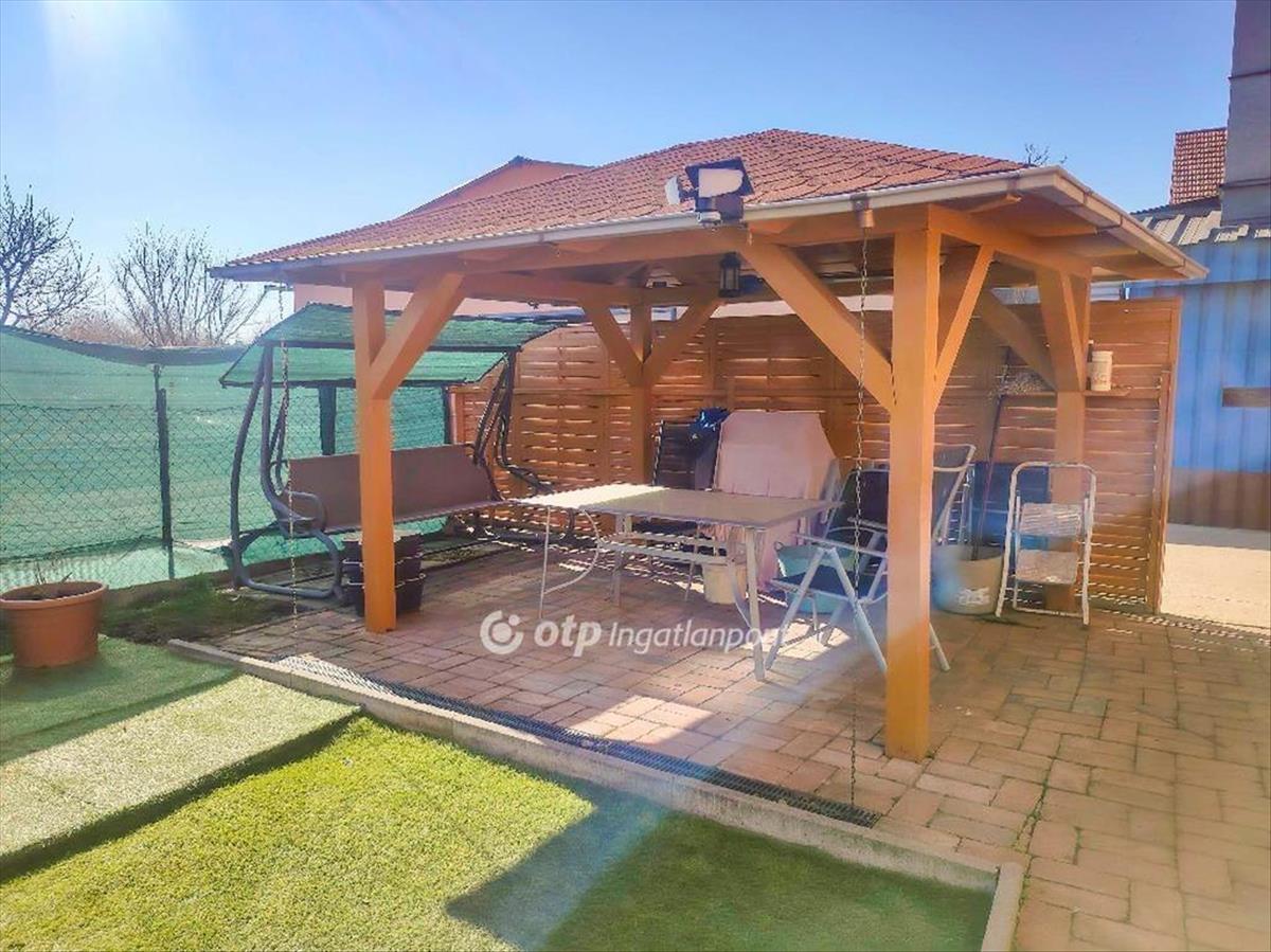 Fedett terasz és fedett kiülő is tartozik az ingatlanhoz, valamint egy épített medence gépészettel. a pincében helyet kapott egy finn szauna is.
