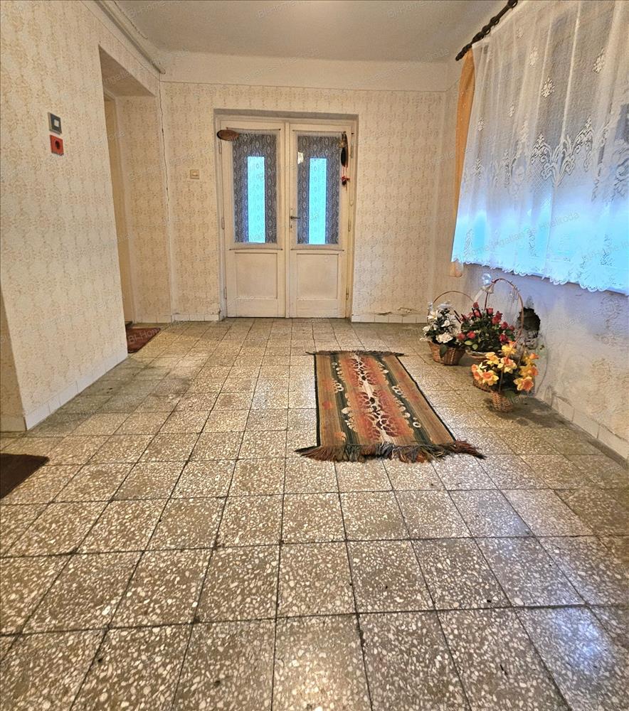 - a házban egy közlekedő, előszoba, 3 szoba, fürdőszoba, konyha, spájz és egy kis gardrób rész található. a két szoba burkolata parketta, míg a harmadik a vályogból épült szoba burkolata beton. a többi helyiség burkolata járólap, illetve kőburkolat, kivéve a közlekedő, amelyet linoleum borít.