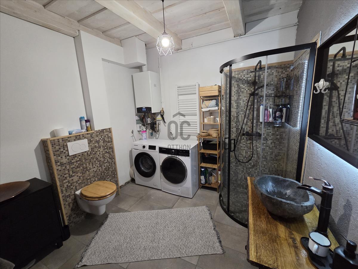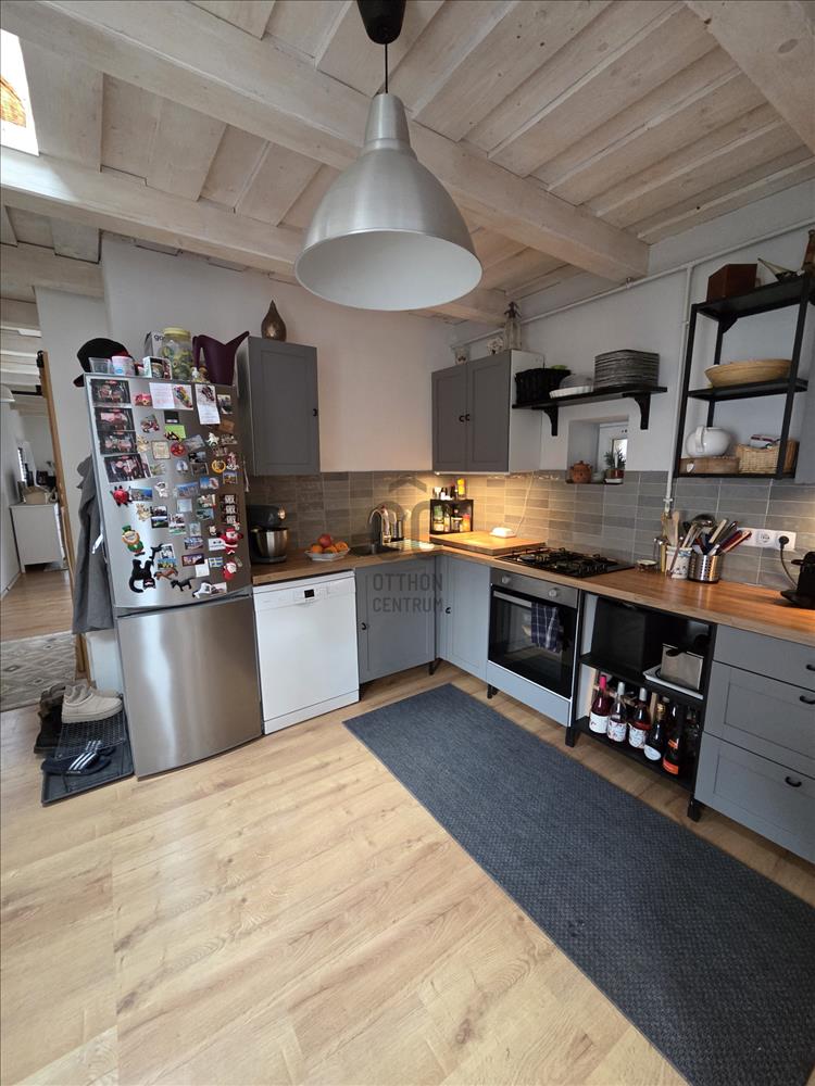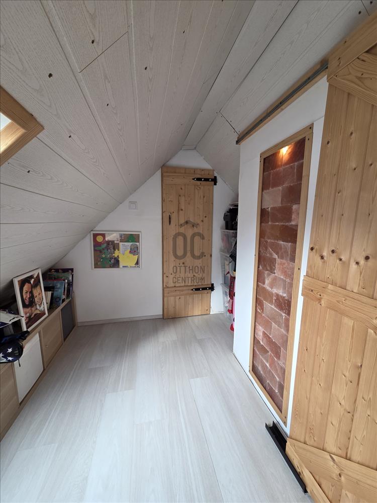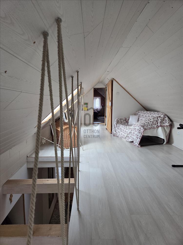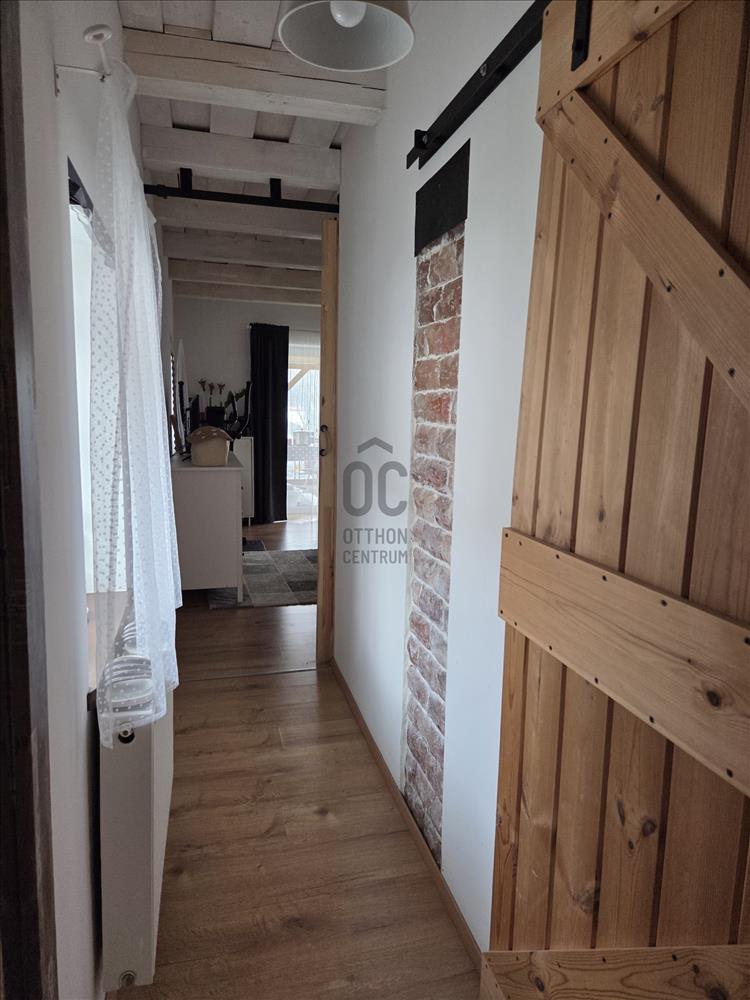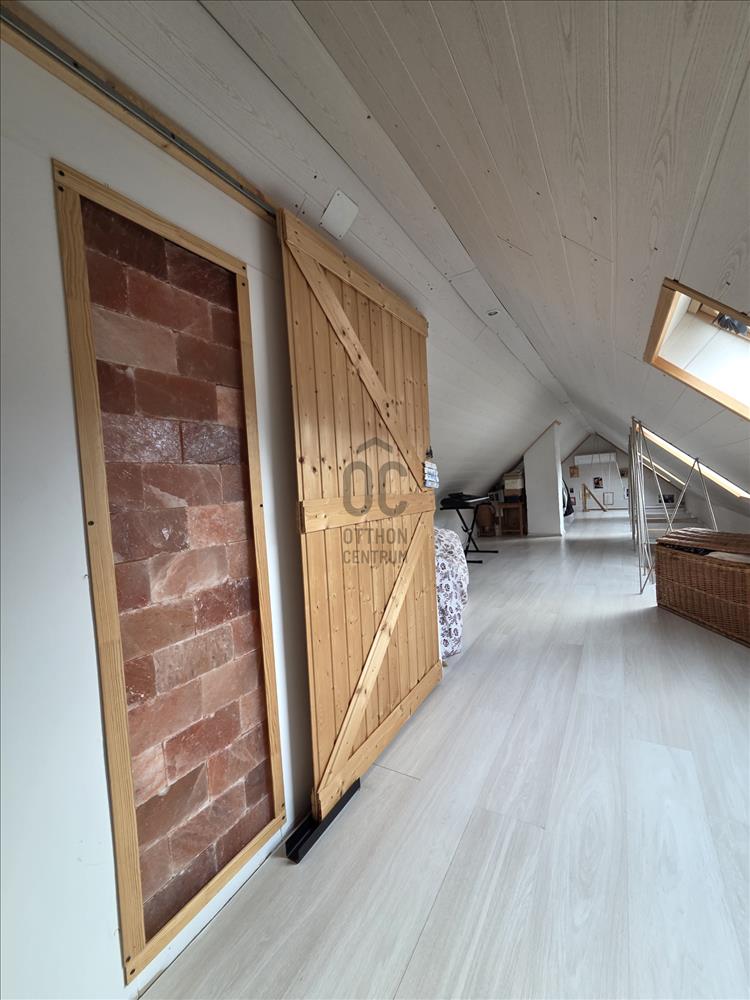 A ház egyik különleges értéke a hagyományos parasztfödém, amely autentikus hangulatot kölcsönöz az enteriőrnek, miközben esztétikai fókuszpontként is funkcionál. a természetes anyaghasználat és a korszerű kialakítás együttesen teremtenek egyedi, mégis otthonos atmoszférát.