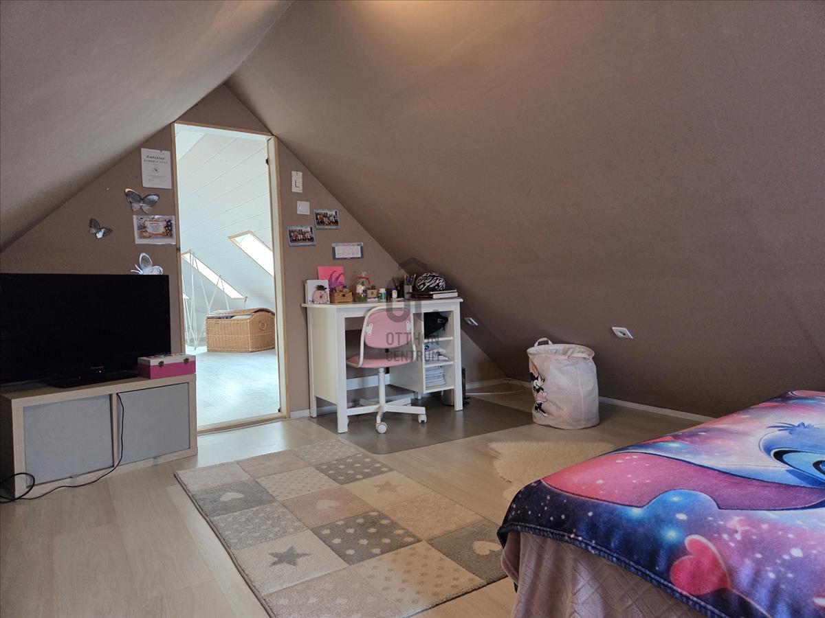 Az emeleti szinten egy hálószoba / gyerekszoba található, valamint egy kézmosó +wc, a fennmaradó tér pedig dolgozószobának vagy akár vendégtérnek is kiválóan alkalmas, így a ház többgyermekes család vagy akár otthoni munkavégzés számára is optimális választás lehet.