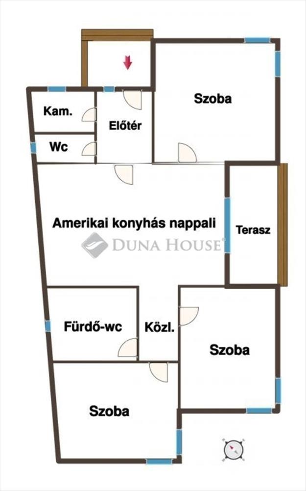 Kialakításra kerül 3 db nagyméretű hálószoba, amerikai konyhás nappali, melyből kijárás van a teraszra, kamra, fürdőszoba-wc, külön wc, közlekedő, előszoba.
