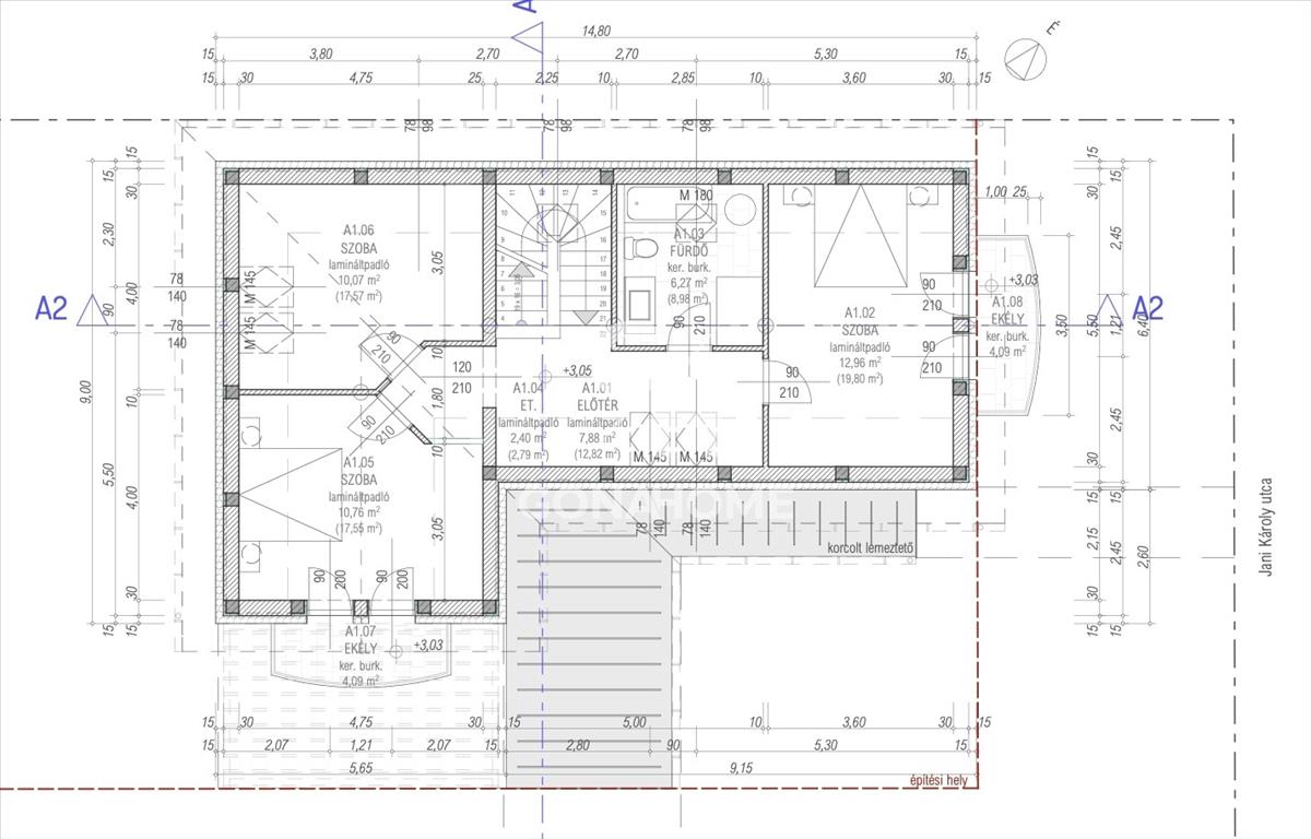 - Erkély: 4, 09 m2, korcolt lemezfedéssel
