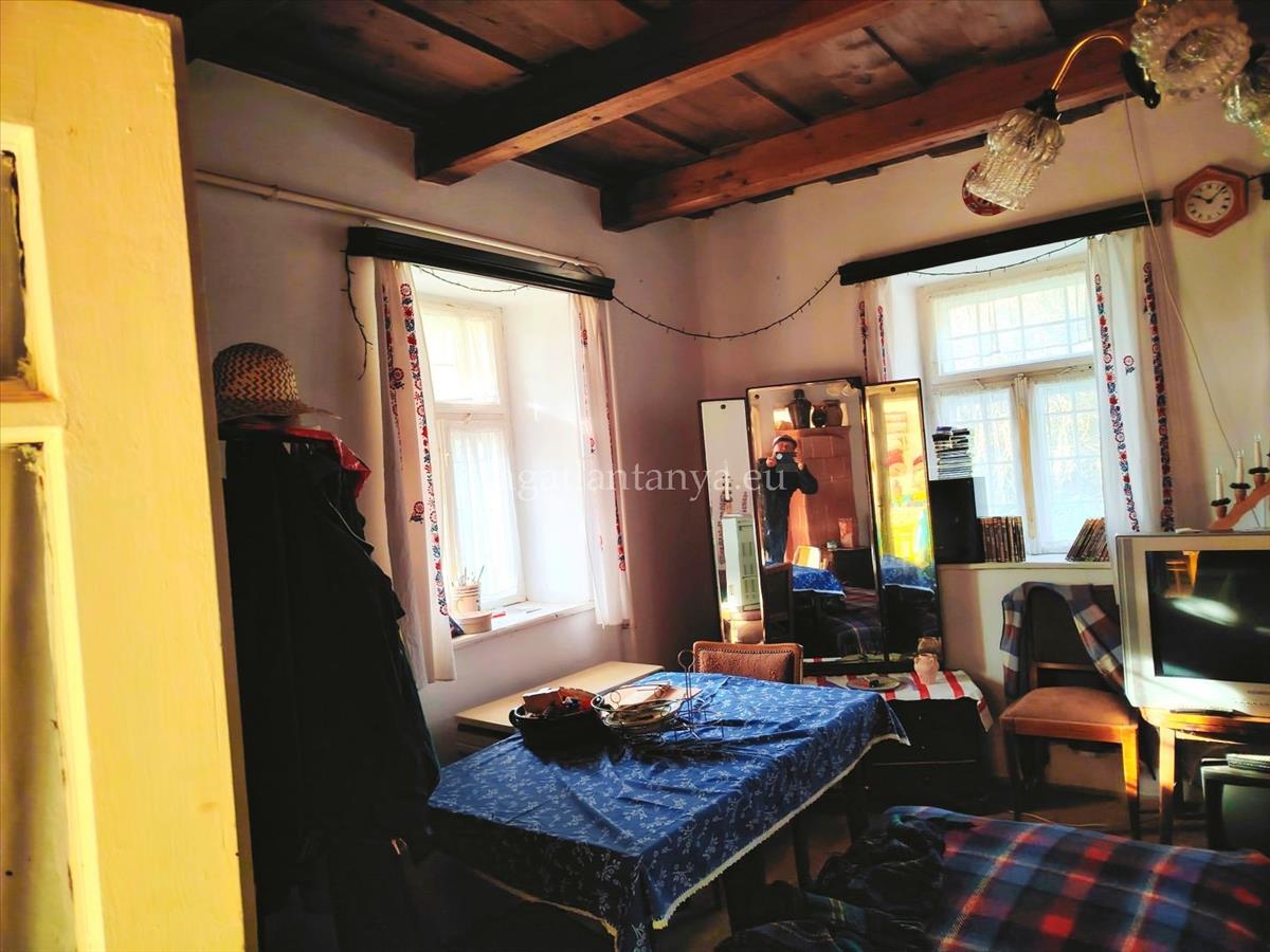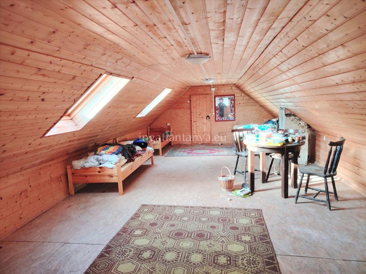 A ház kb. 100 Éves, egy 10 nm --es pincével, kis tárolóval, fedett terasszal, alsó szinten 2 szobával, konyha + étkezővel, fürdőszobával, cserépkályhával, teljes beépített tetőtérrel, külső plusz zuhanyzós fürdőszobával, nagy telken. a tetőteret külső falétrán lehet megközelíteni.