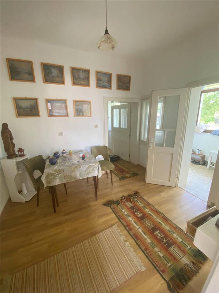 A házba belépve a tulajdonos által kiépített “szélfogó” részhez érünk, majd ezt követi az előtér. Innen nyílnak a tágas méretű szobák ajtói, ahol még a “halszálka”mintás tölgyfa parketta jellemző.