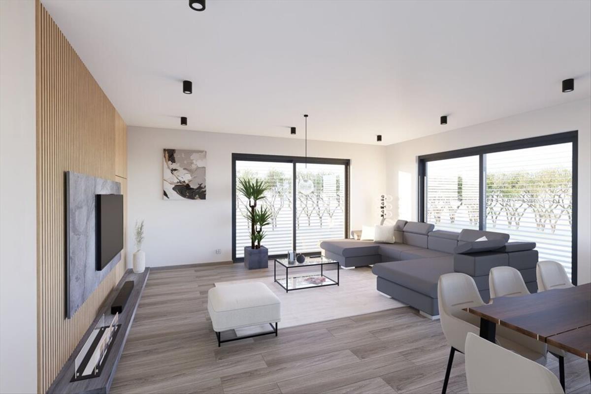 Ez fog minket fogadni: 4 szoba + nappali, 3 fürdőszoba, 2 autó számára fűtött garázs, privát terasz.